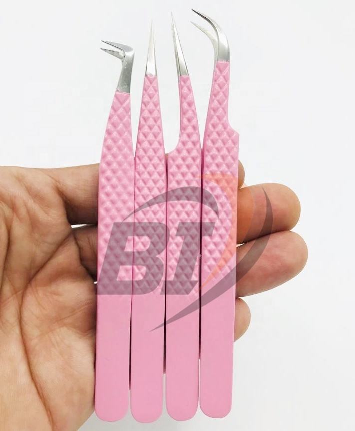 แหนบต่อขนตาที่จับเพชรทำจากแป้งสีชมพูแบบมืออาชีพแหนบเคลือบเฮลโลคิตตี้
