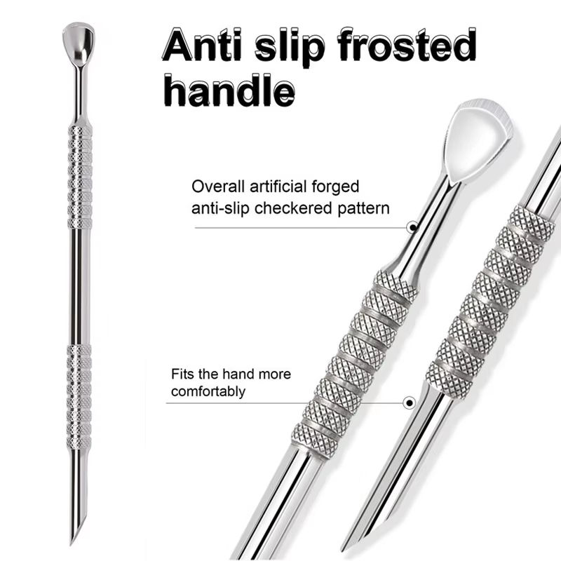 ที่ดันหนังกำพร้าทำเล็บมืออาชีพ สแตนเลสสตีล สองด้าน สองหัว ใช้ซ้ำได้ สำหรับตกแต่งเล็บและกำจัดหนังกำพร้า