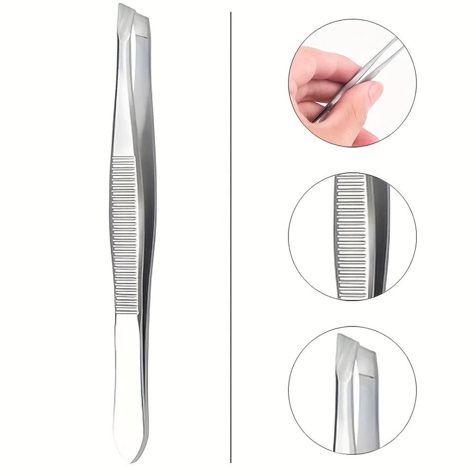 แหนบคิ้วสแตนเลสแบบมืออาชีพ - เครื่องมือตกแต่งคิ้วปลายแบนเพื่อการจัดแต่งทรงคิ้วและกำจัดขน เครื่องมือเสริมความงาม