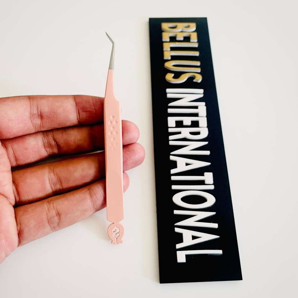 แหนบต่อขนตาสแตนเลสแบบมืออาชีพปากคีบแบบโค้งปลายแหลมปรับได้อย่างยั่งยืน