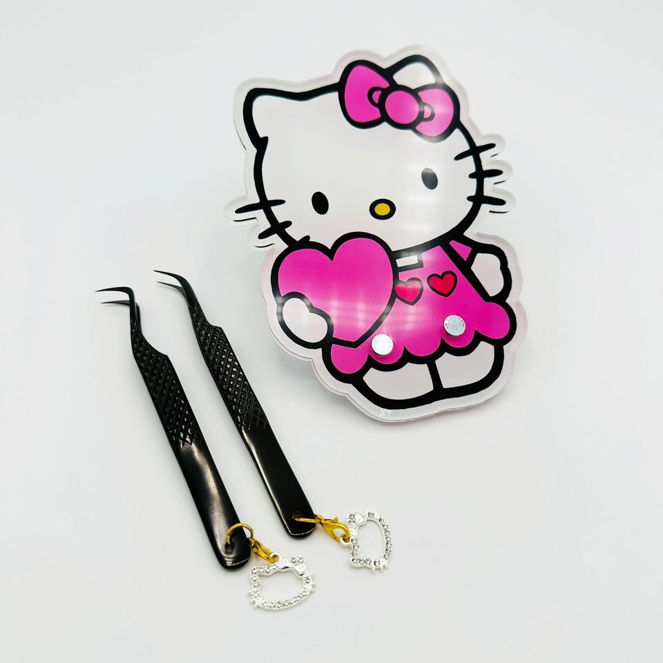 แหนบต่อขนตาทำจากสเตนเลสแบบมืออาชีพพร้อมจี้เฮลโลคิตตี้ดีไซน์โค้งอะคริลิค