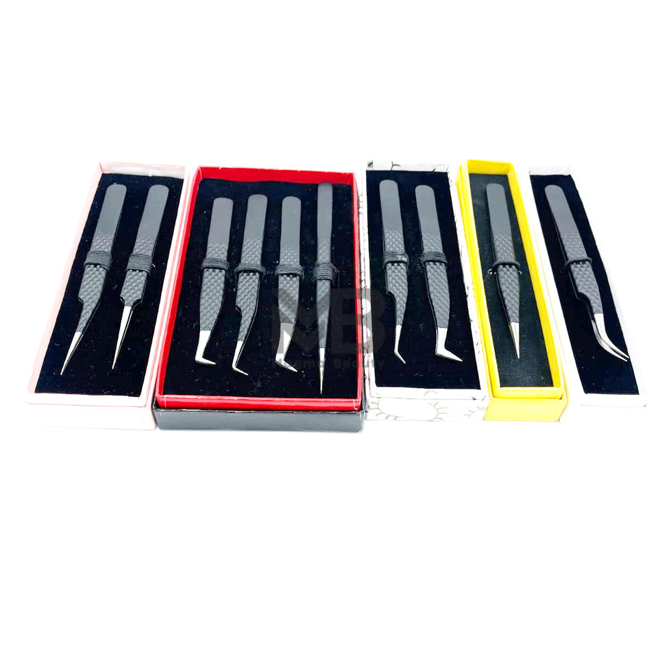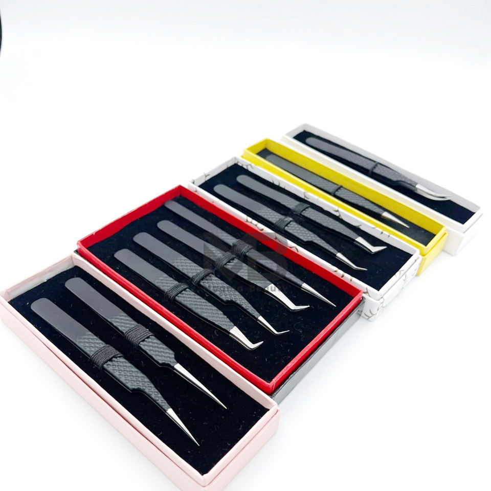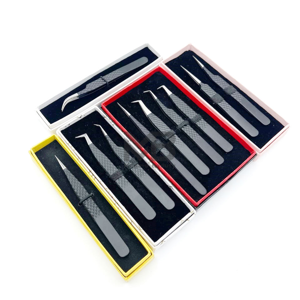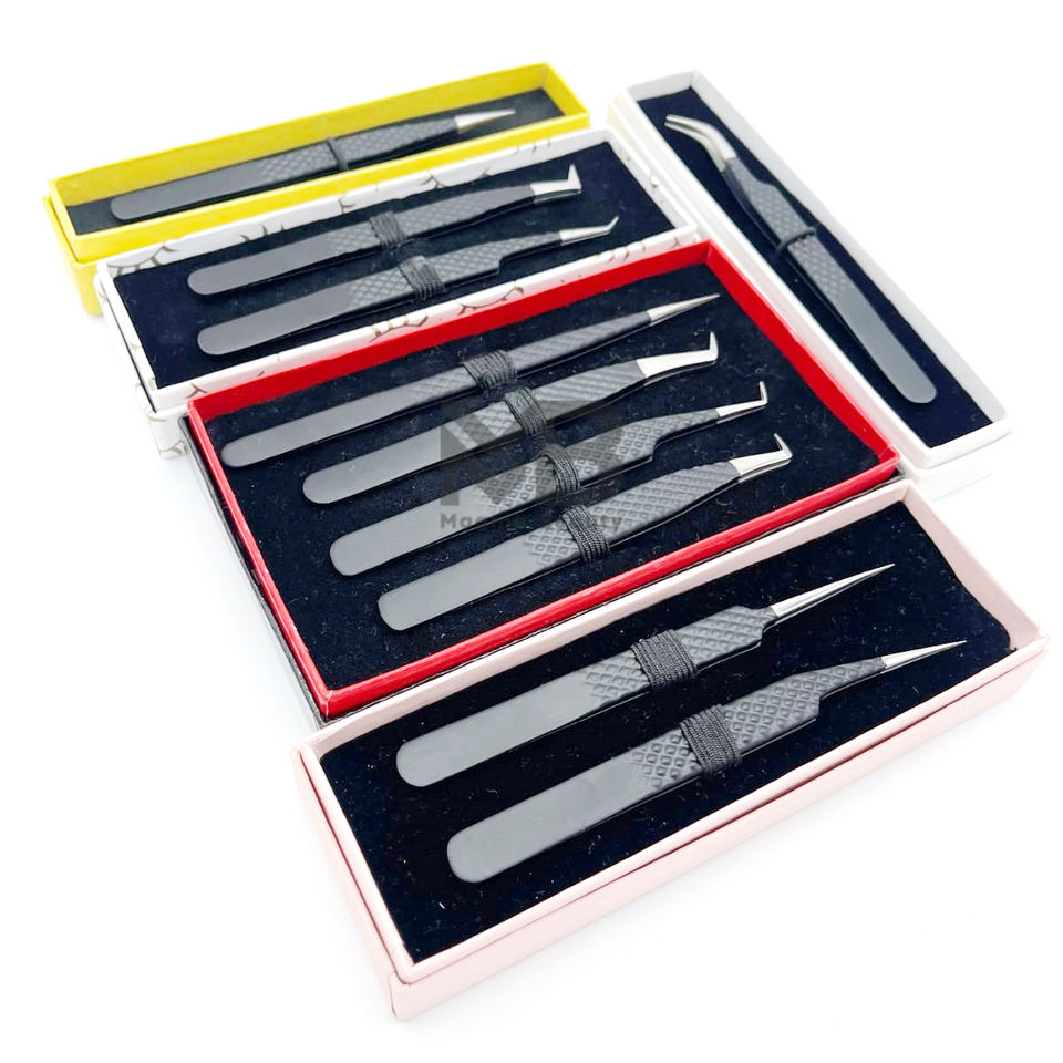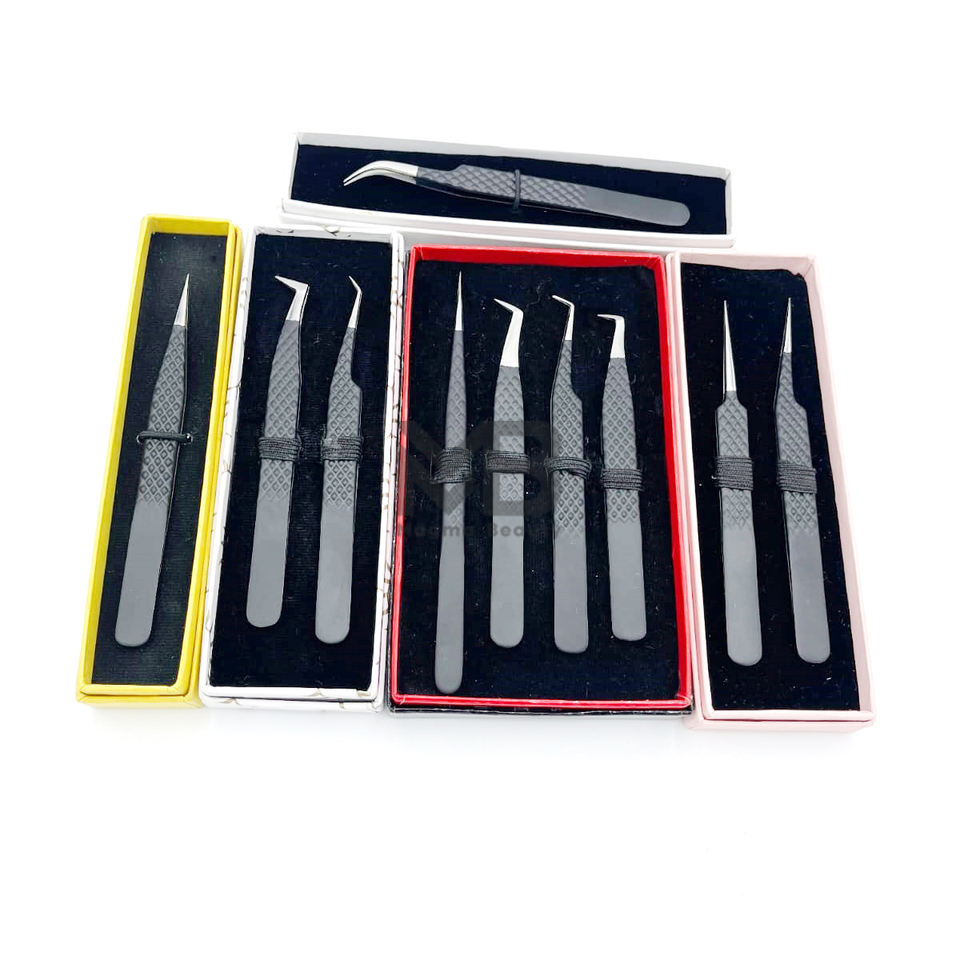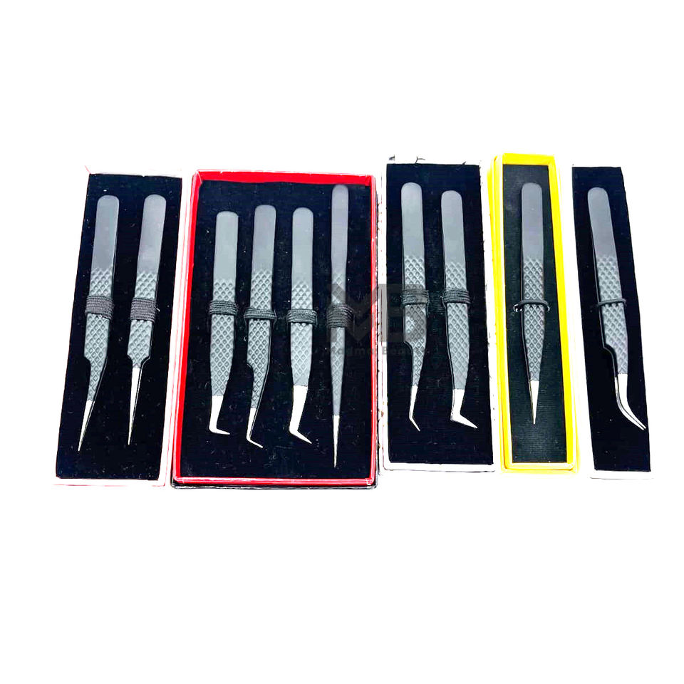 ชุดแหนบต่อขนตาสแตนเลสมืออาชีพประกอบด้วยปลายโค้งตรงและมุมสำหรับการแยกและเพิ่มวอลลุ่ม