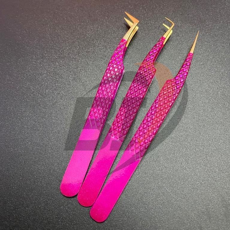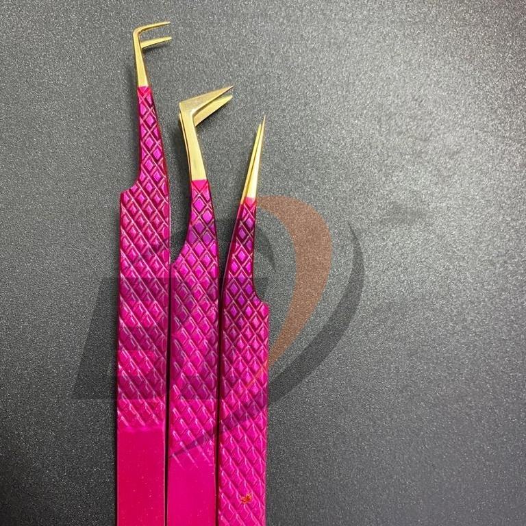 แหนบปลายแหลมสำหรับต่อขนตาปลอมสีชมพูแบบมืออาชีพ