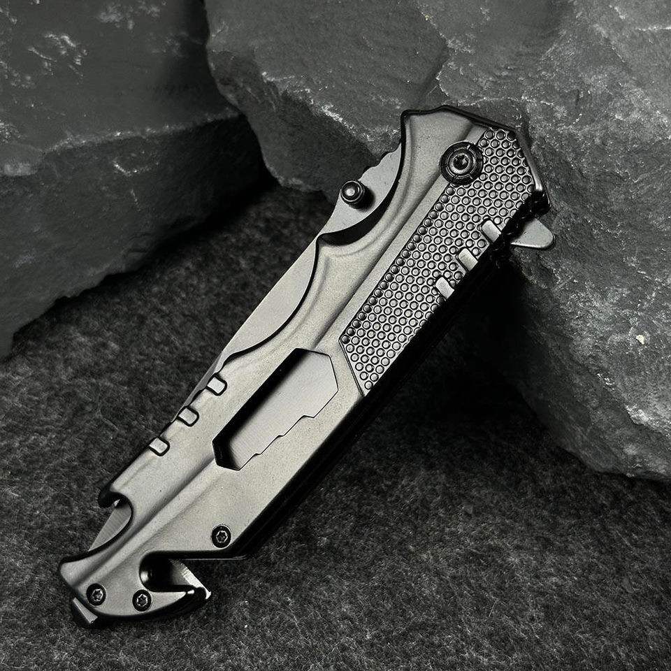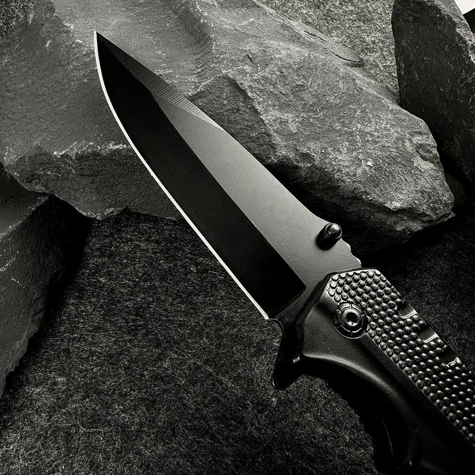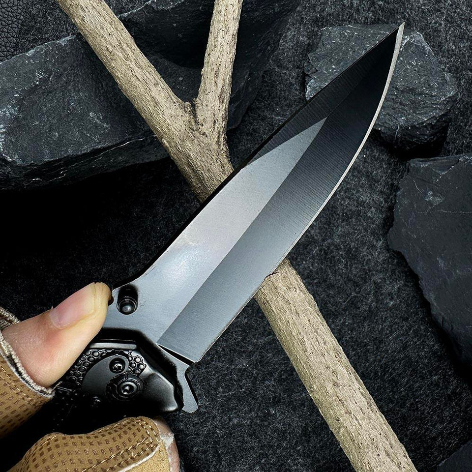 Professional Stainless Steel Folding Pocket Knife Black Handle Serrated Blades for Outdoor Camping Hunting Bowie Knife