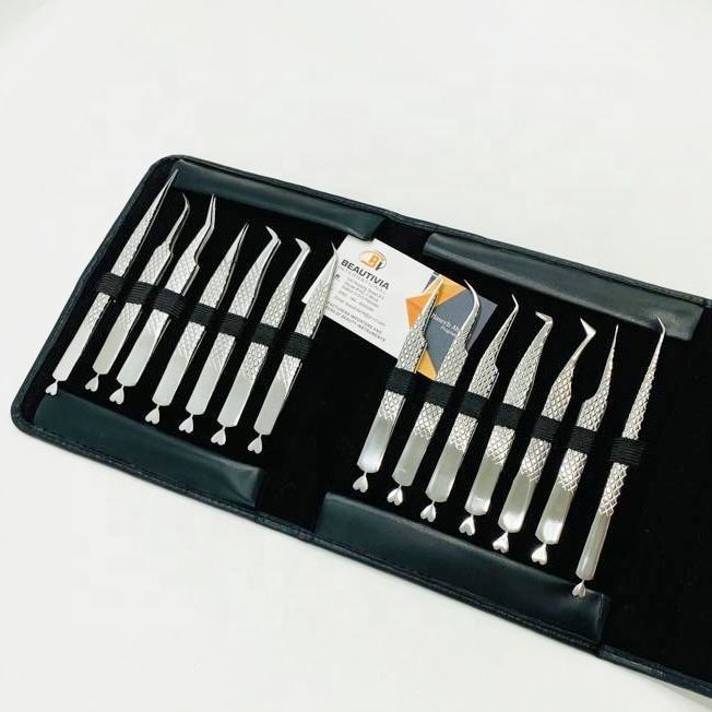 แหนบต่อขนตาปลอมสแตนเลสแบบมืออาชีพเครื่องมือปลายแหลมที่ผ่านการทดสอบด้วยมือพร้อมคุณสมบัติส่วนตัวแบบคลาสสิก