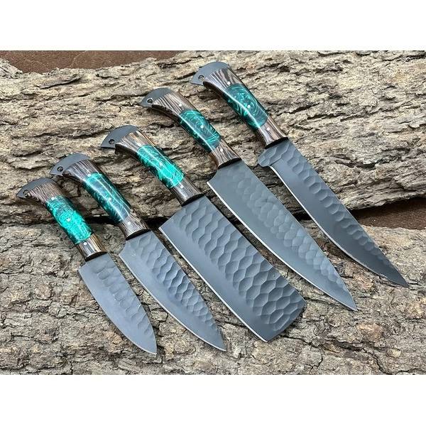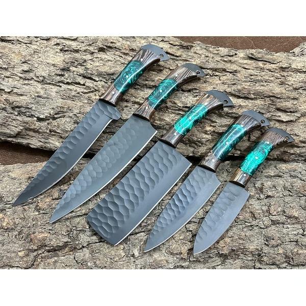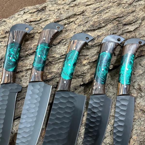 ชุดมีดทำครัวสแตนเลสแบบมืออาชีพชุด5-Pcs เชฟทำครัวเต็มถังพร้อมกระเป๋าม้วนหนัง
