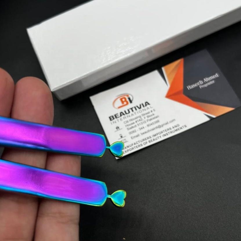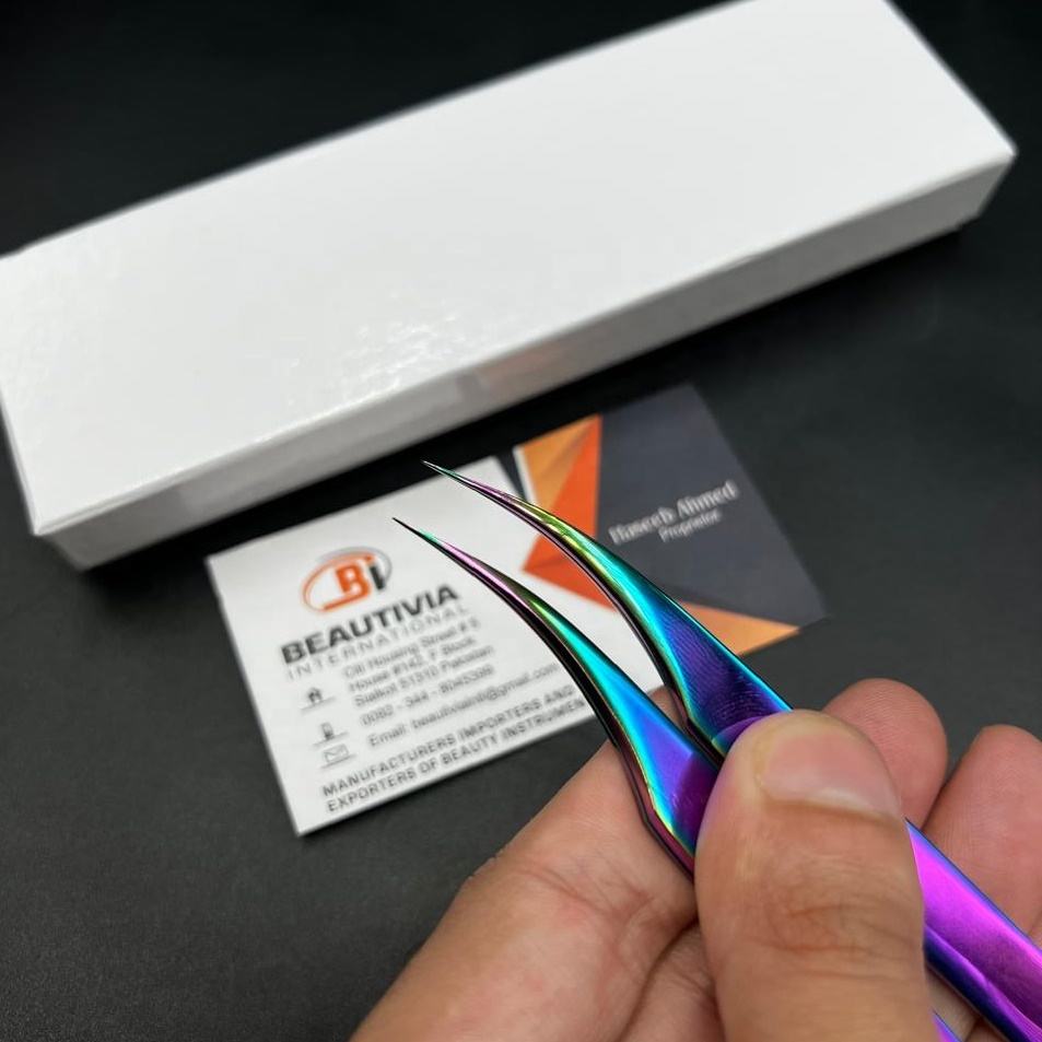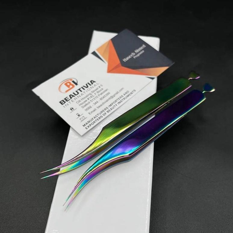 แหนบแยกปลายแหลมอุปกรณ์ต่อขนตาเพิ่มวอลลุ่มแบบปิดทำจากพลาสม่าสีรุ้งสำหรับมืออาชีพ