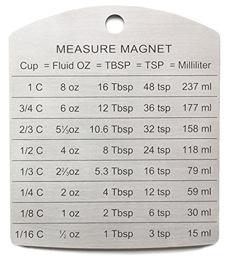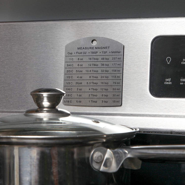 แผนภูมิแปลงหน่วยการวัดสำหรับการอบขนม ทำจากสแตนเลสอย่างดี ใช้ติดตู้เย็นได้