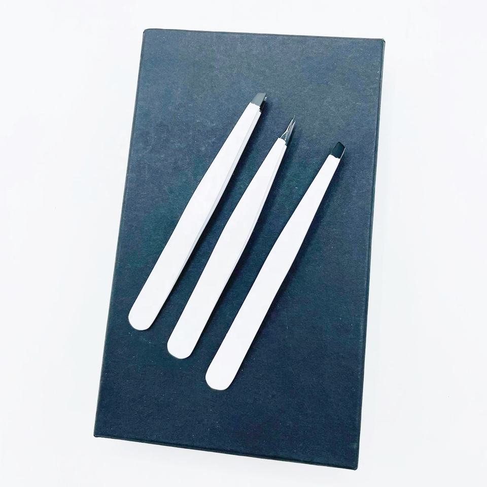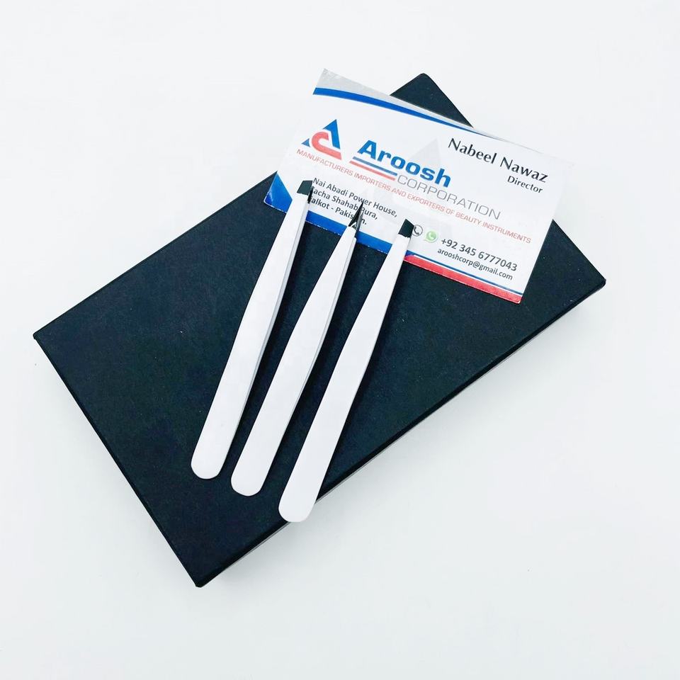 ชุดแหนบถอนขนคิ้วปลายดำพลาสม่าเครื่องมือความงามชุดแหนบปลายคิ้วแบบเอียงทำจากสเตนเลสสตีลสำหรับมืออาชีพ