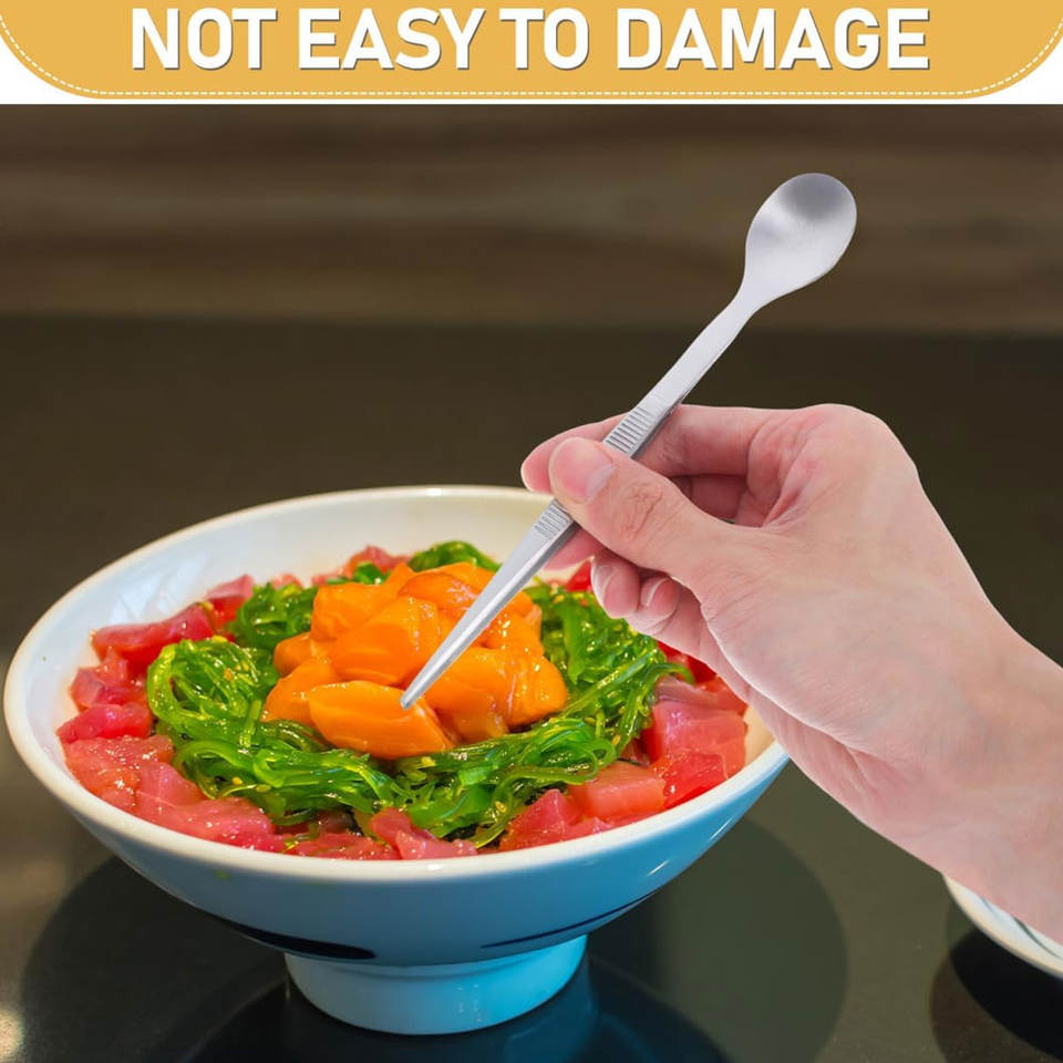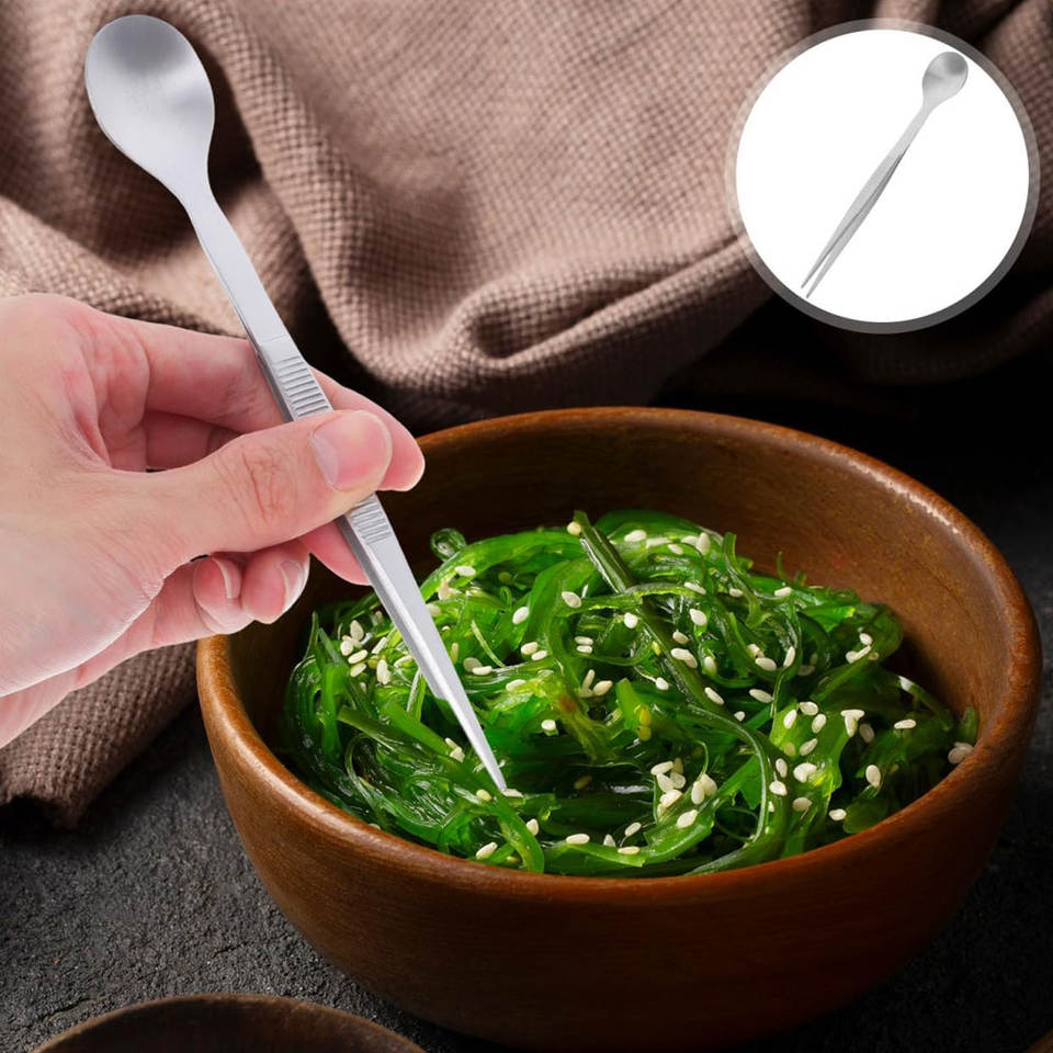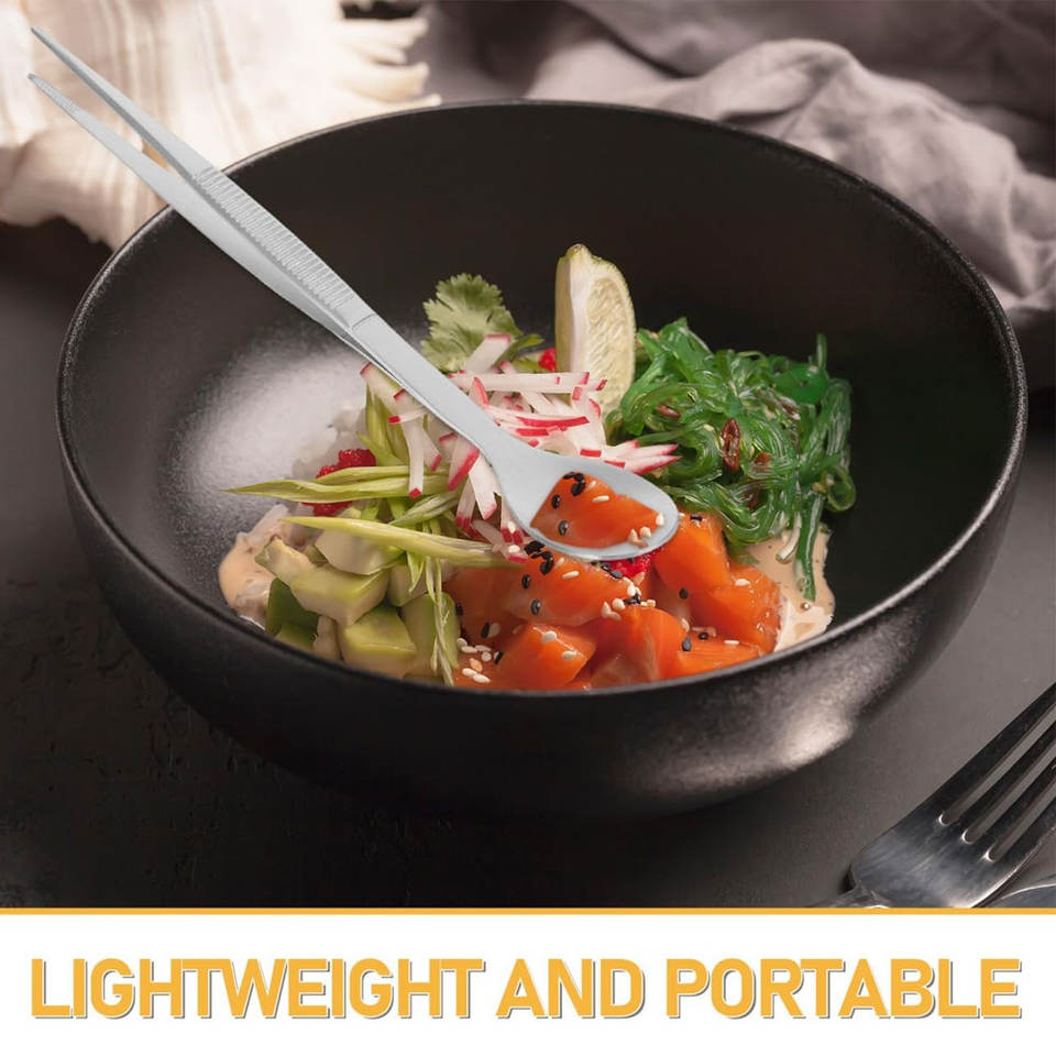ชุดอุปกรณ์สแตนเลสสตีลระดับมืออาชีพ ช้อนเสิร์ฟและแหนบชิมอาหาร น้ำหนักเบา ใช้กับเครื่องล้างจานและเตาอบได้ อุปกรณ์ดูแลส่วนบุคคล