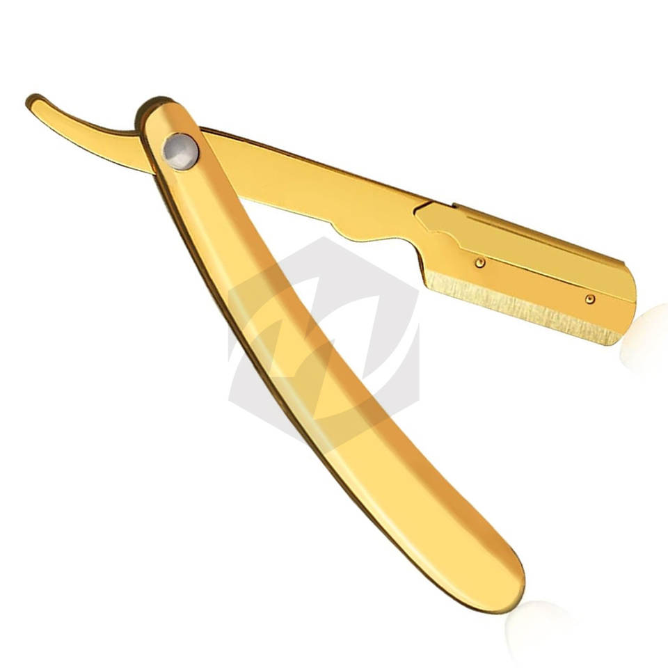 มีดโกนหนวดแบบตรงสำหรับผู้ชายที่โกนหนวดแบบมืออาชีพมีดโกนขอบตรงที่โกนหนวดช่างตัดผมสแตนเลสสีทองโกนหนวดเรียบ