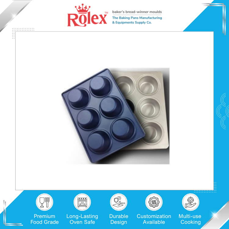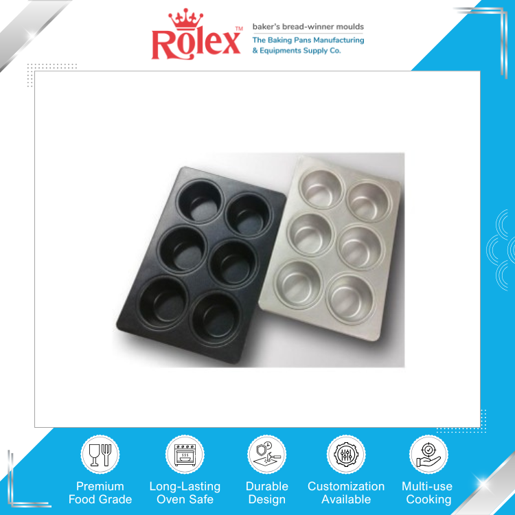 ผู้จัดจำหน่ายมืออาชีพจำหน่ายถาดอบเคลือบสารกันติด ขนาด 0.6 มม. อลูสตีล 35 กรัม ถาดอบเค้ก/มัฟฟิน 6 ถ้วย สำหรับขาย