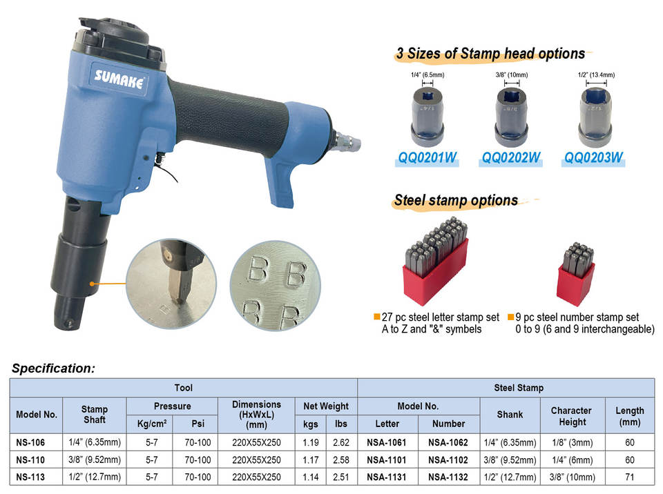 เครื่องมือตอกลมคุณภาพสูง SUMAKE NS-106 สำหรับงานปั๊มลมแบบมืออาชีพ พร้อมบริการ OEM ตามความต้องการ ผลิตในไต้หวัน