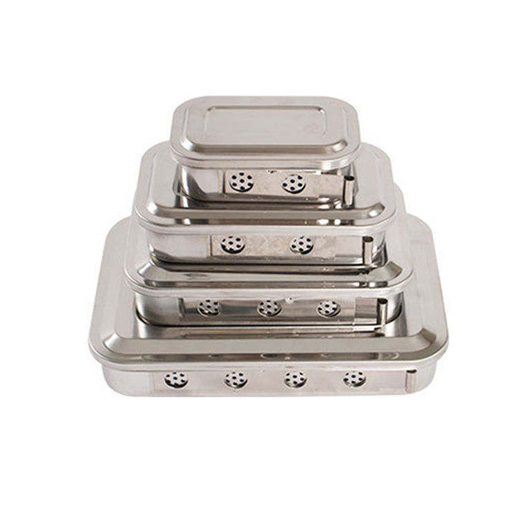 กล่องถาดสแตนเลสสแตนเลสแบบมีรูพรุนสำหรับจัดเก็บอุปกรณ์ผ่าตัดทางทันตกรรมกล่องถาดฆ่าเชื้อสำหรับใช้ในการผ่าตัดแบบมืออาชีพ