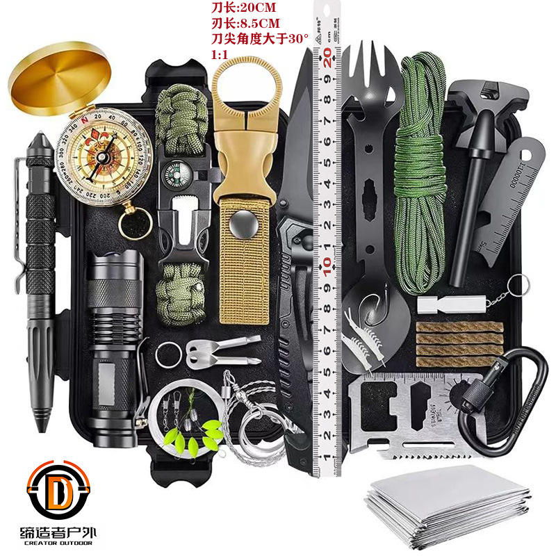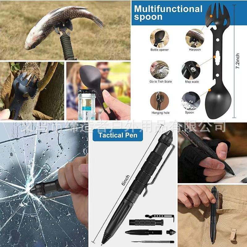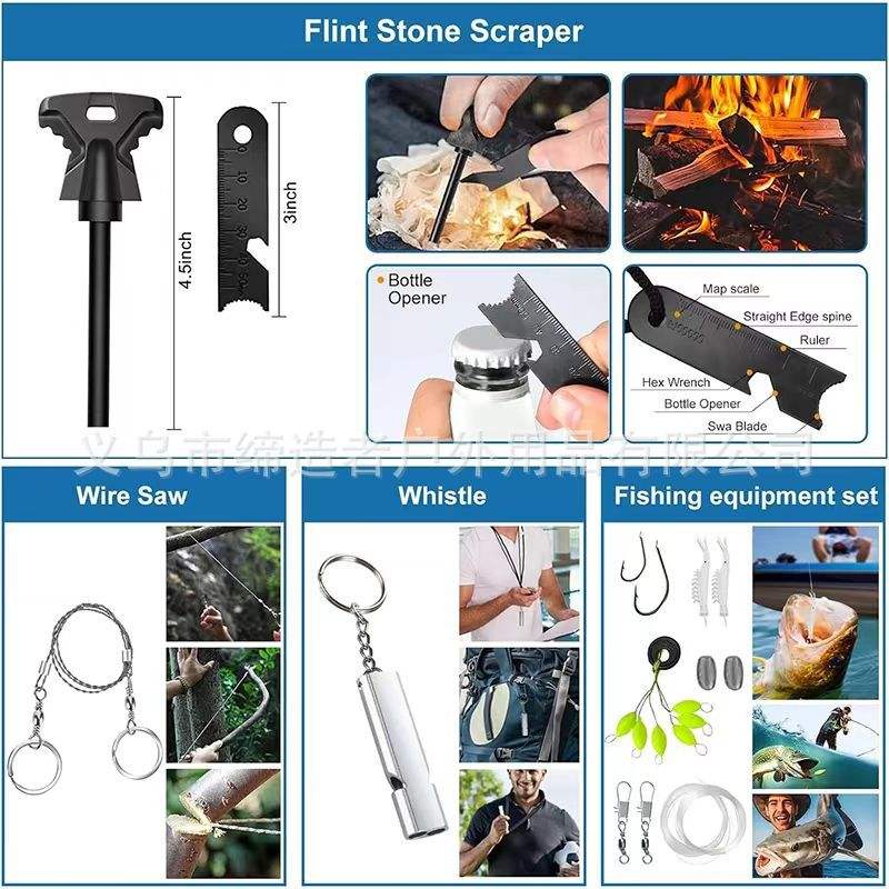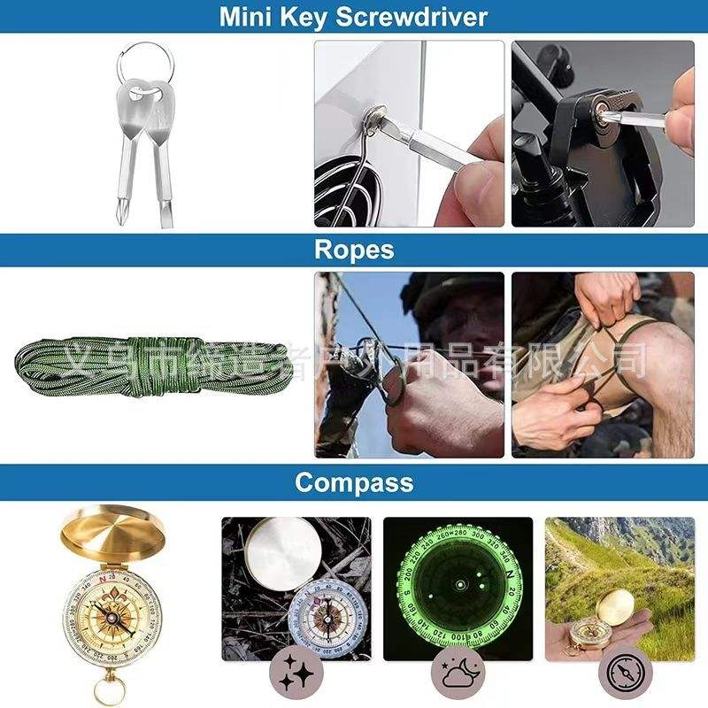 ชุดอุปกรณ์เอาตัวรอดระดับมืออาชีพพร้อมไฟฉายและผ้าห่มฉุกเฉิน อุปกรณ์ตั้งแคมป์กลางแจ้งขนาดกะทัดรัด 30 in 1 เครื่องมือความปลอดภัยอะลูมิเนียม