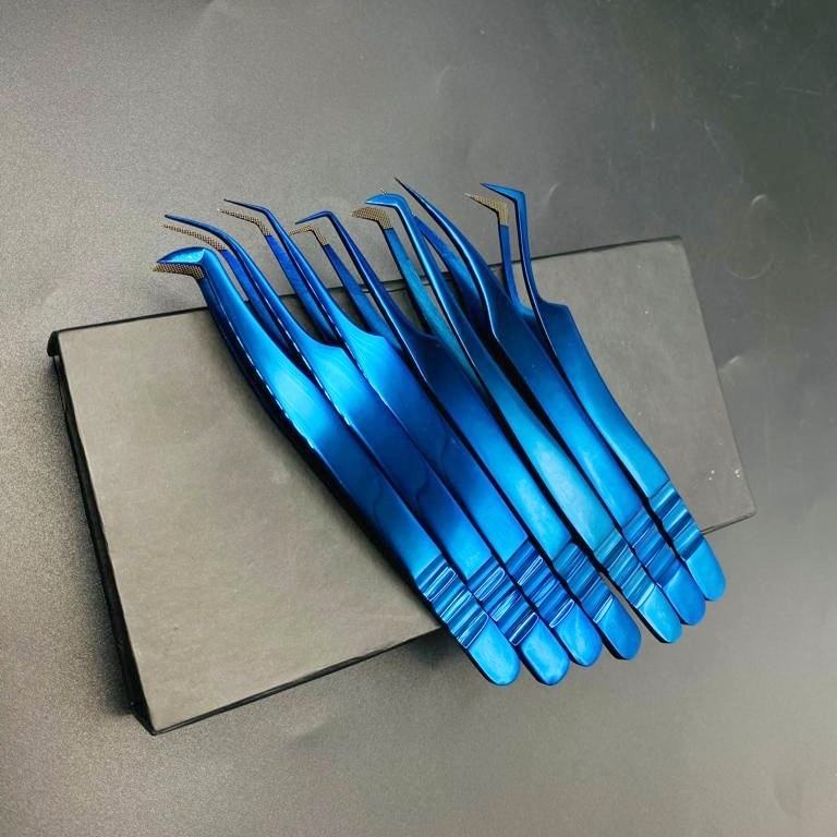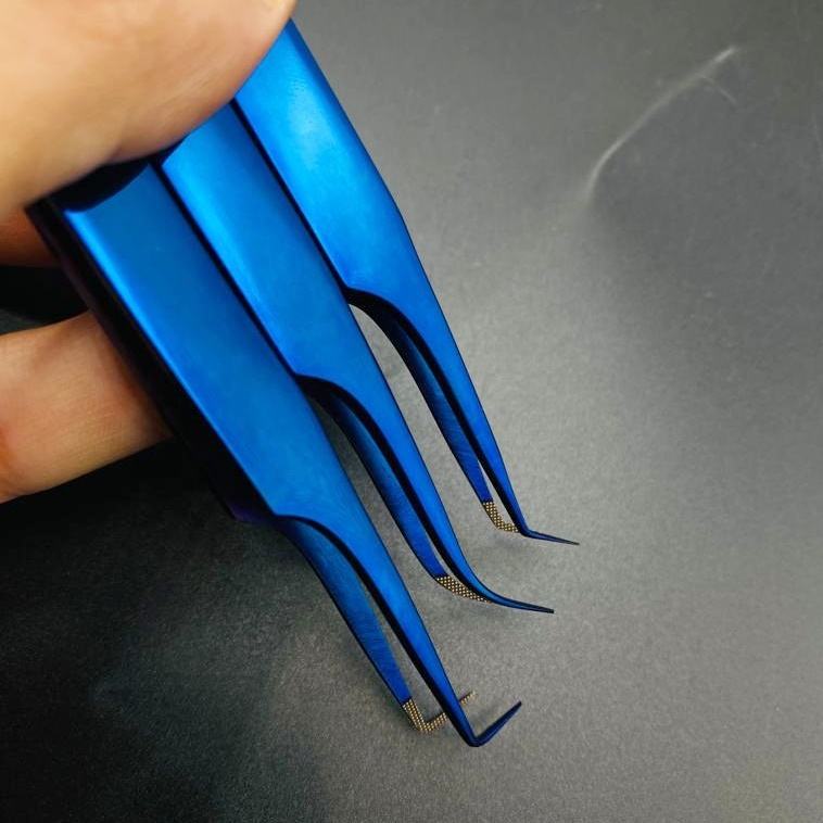 แหนบปลายแหลมสีฟ้าสำหรับต่อขนตาแบบมืออาชีพปรับแต่งได้ตามต้องการ