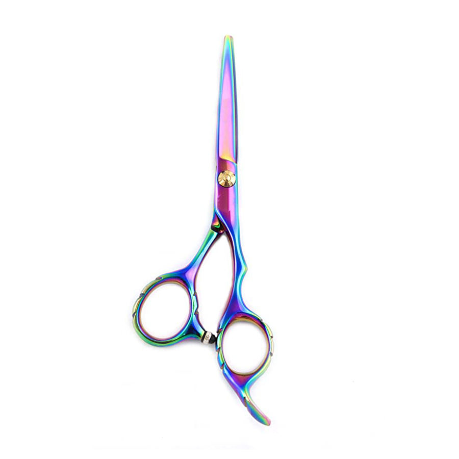 กรรไกรตัดเหล็กแบบมืออาชีพพร้อมใบมีดไทเทเนียมหลายสีที่ปรับได้สกรูตรงสำหรับตัดผมและแต่งผม