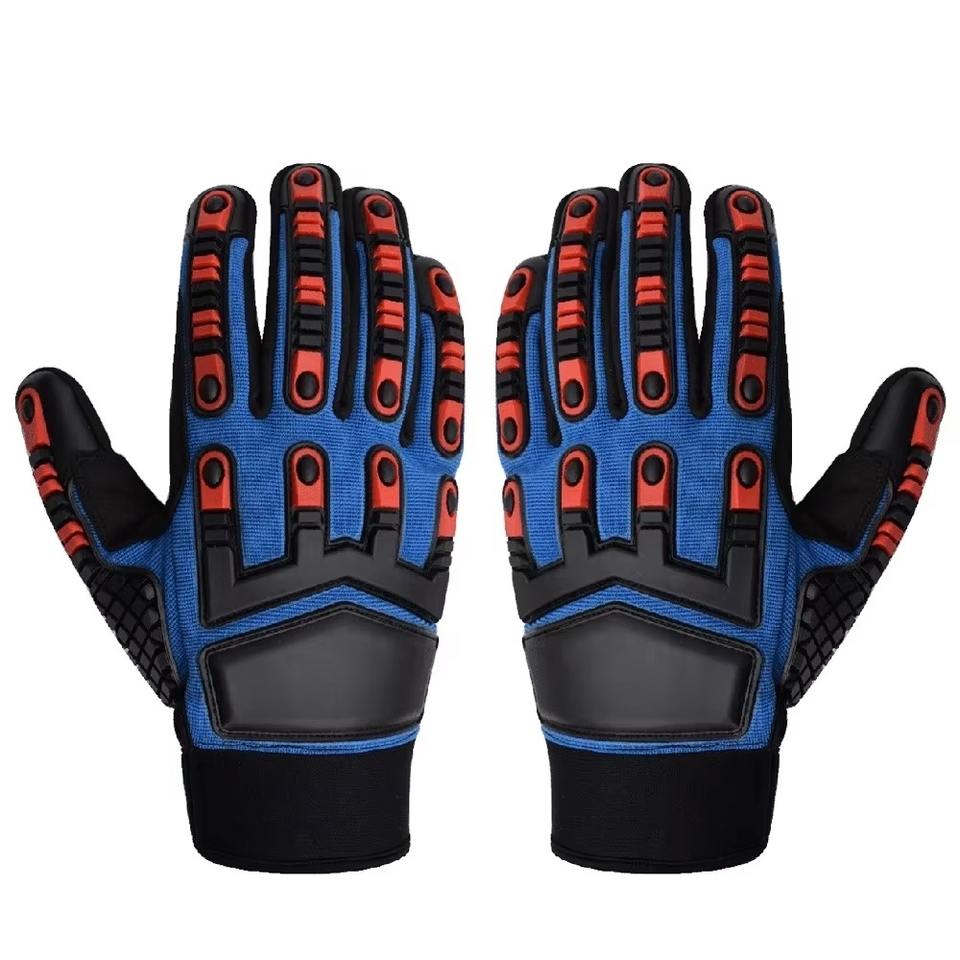 ถุงมือป้องกันการสั่นสะเทือนทำจากโพลีเอสเตอร์ทนทานถุงมือป้องกันแรงกระแทกแบบมืออาชีพ