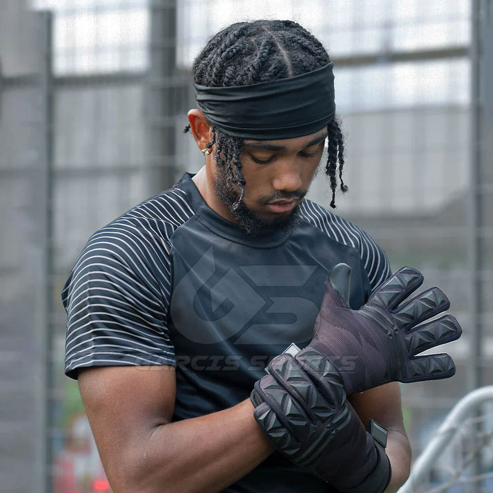 ถุงมือผู้รักษาประตูสำหรับฝึกซ้อมแบบมืออาชีพพร้อมถุงมือยางถุงมือผู้รักษาประตูแบบระบายอากาศได้มีความยืดหยุ่น