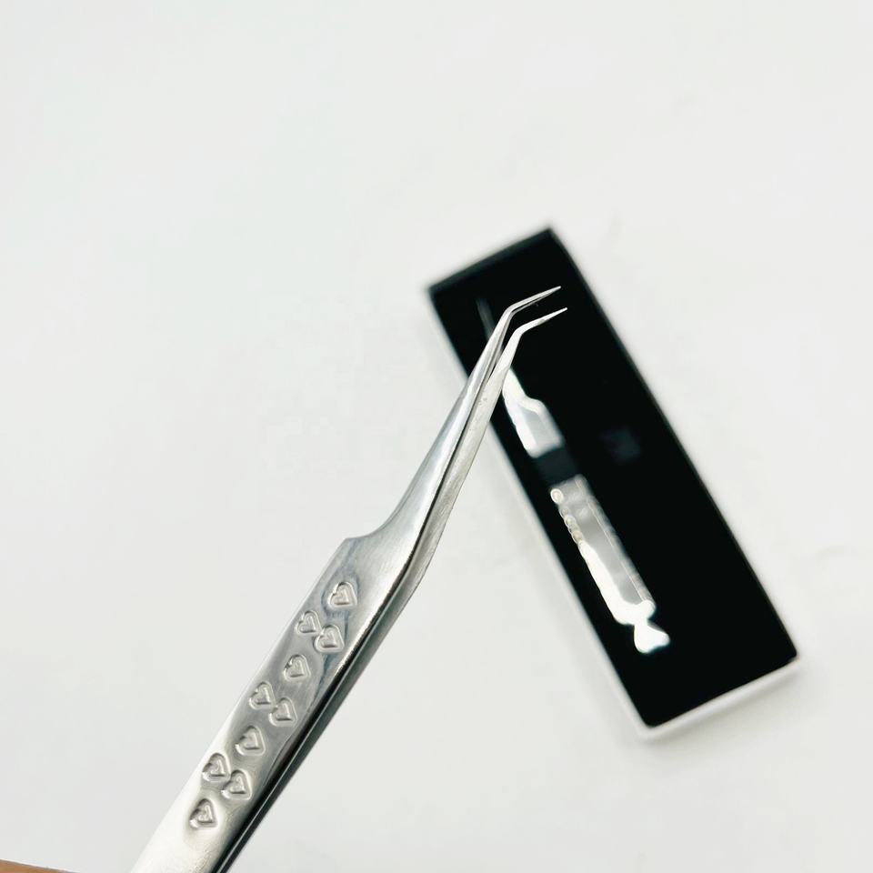 ชุดแหนบสำหรับผู้หญิงขนตาปลอม45องศาพร้อมแหนบสลักหัวใจดีไซน์สแตนเลส