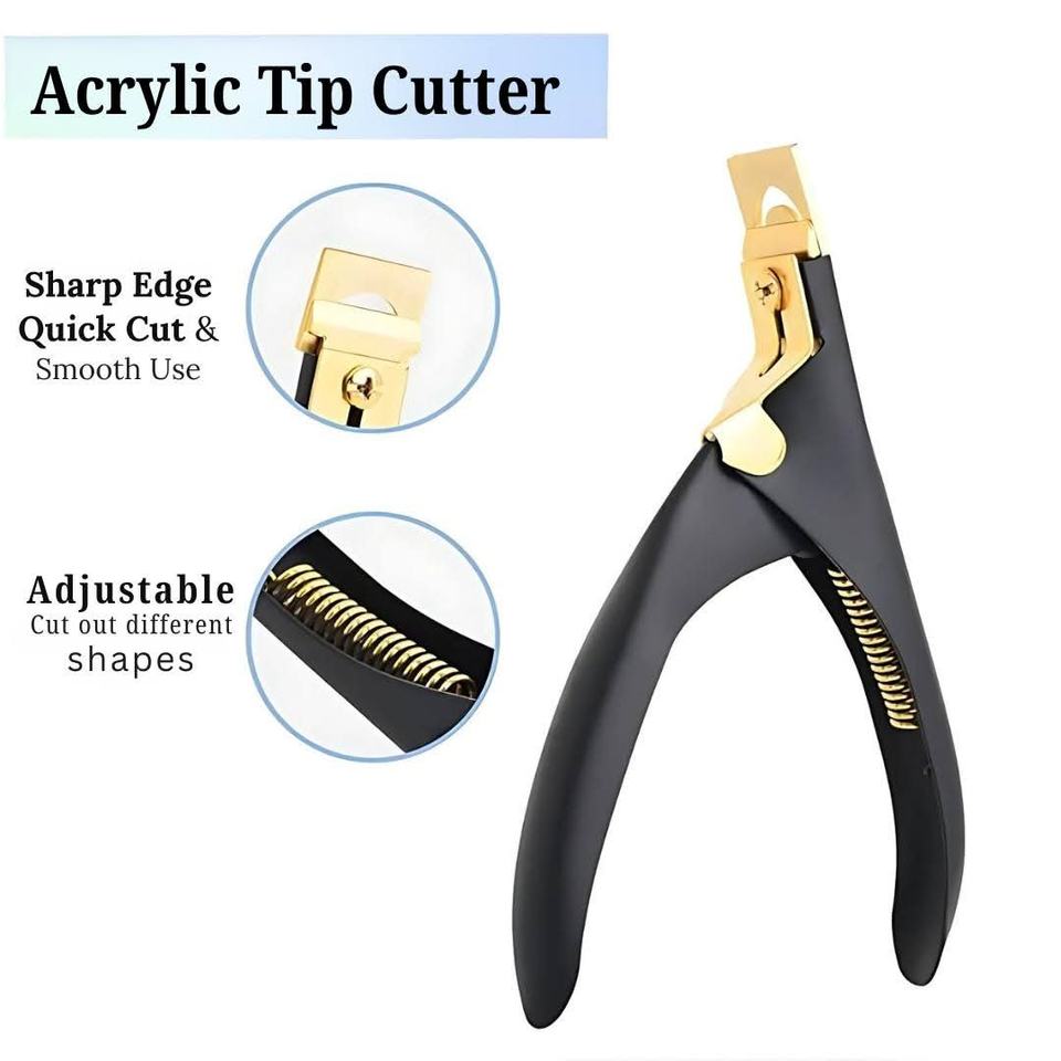 กรรไกรตัดเล็บสแตนเลสรูปตัวยูสำหรับมืออาชีพอุปกรณ์ตกแต่งเล็บพร้อมที่ตัดเล็บปลอมสีดำ