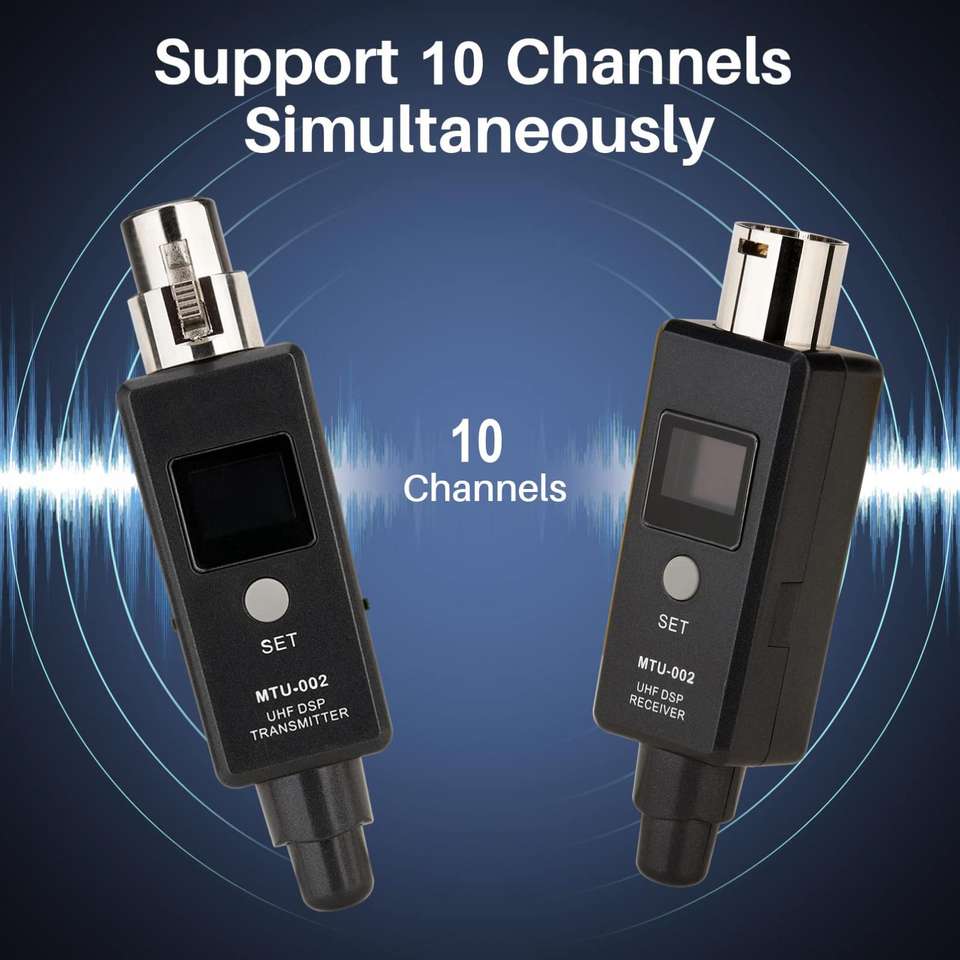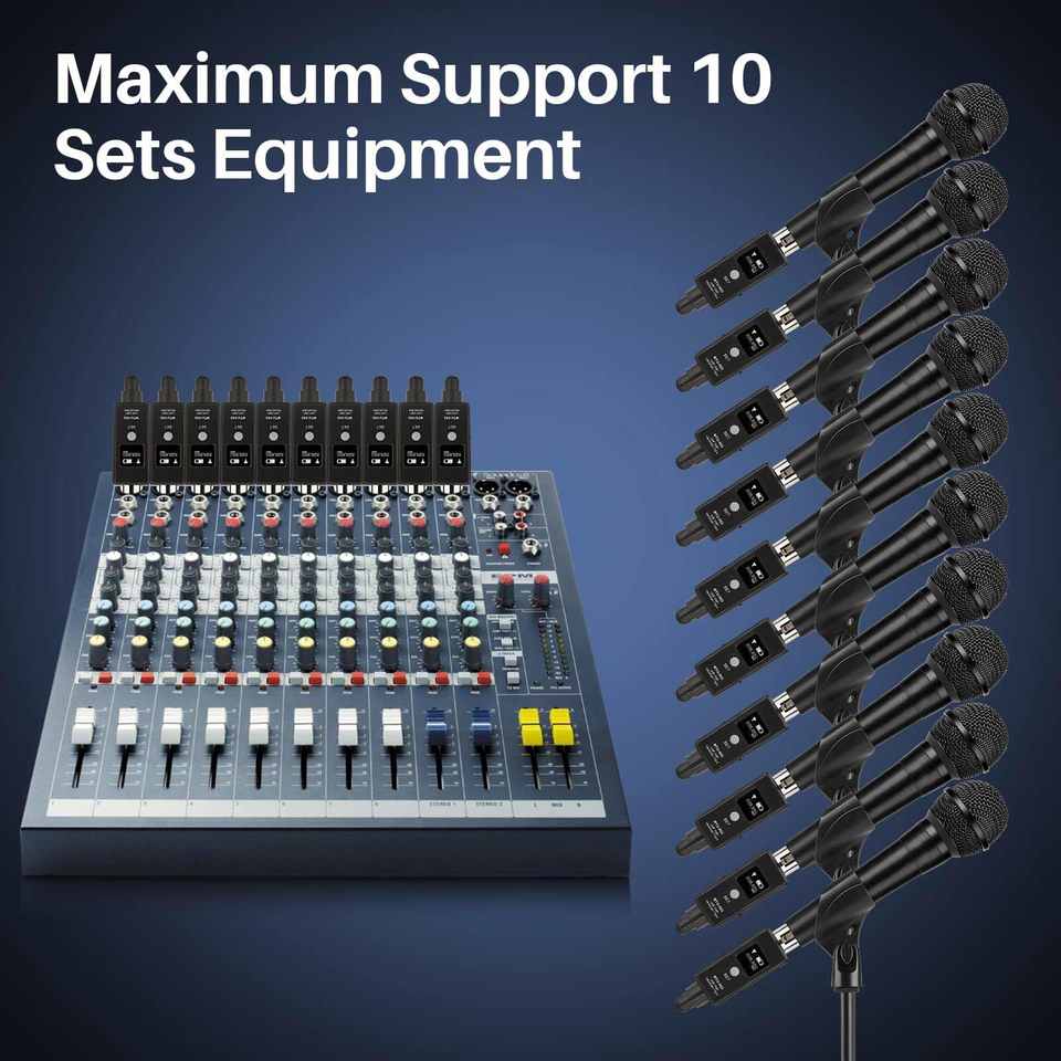 ระบบรับและส่งสัญญาณไร้สาย UHF ไมโครโฟนไร้สายแบบพกพา XLR 10ช่องโลหะ