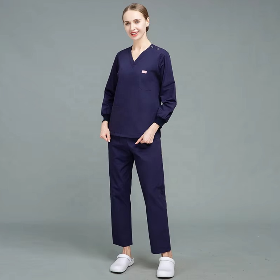 ชุดยูนิฟอร์มโรงพยาบาลสำหรับบุรุษและสตรี ผลิตจากผ้าฝ้ายผสมโพลีเอสเตอร์ เหมาะสำหรับแพทย์ พยาบาล ชุดคลุมแล็บสีขาว เป็นมิตรกับสิ่งแวดล้อม น้ำหนักเบา