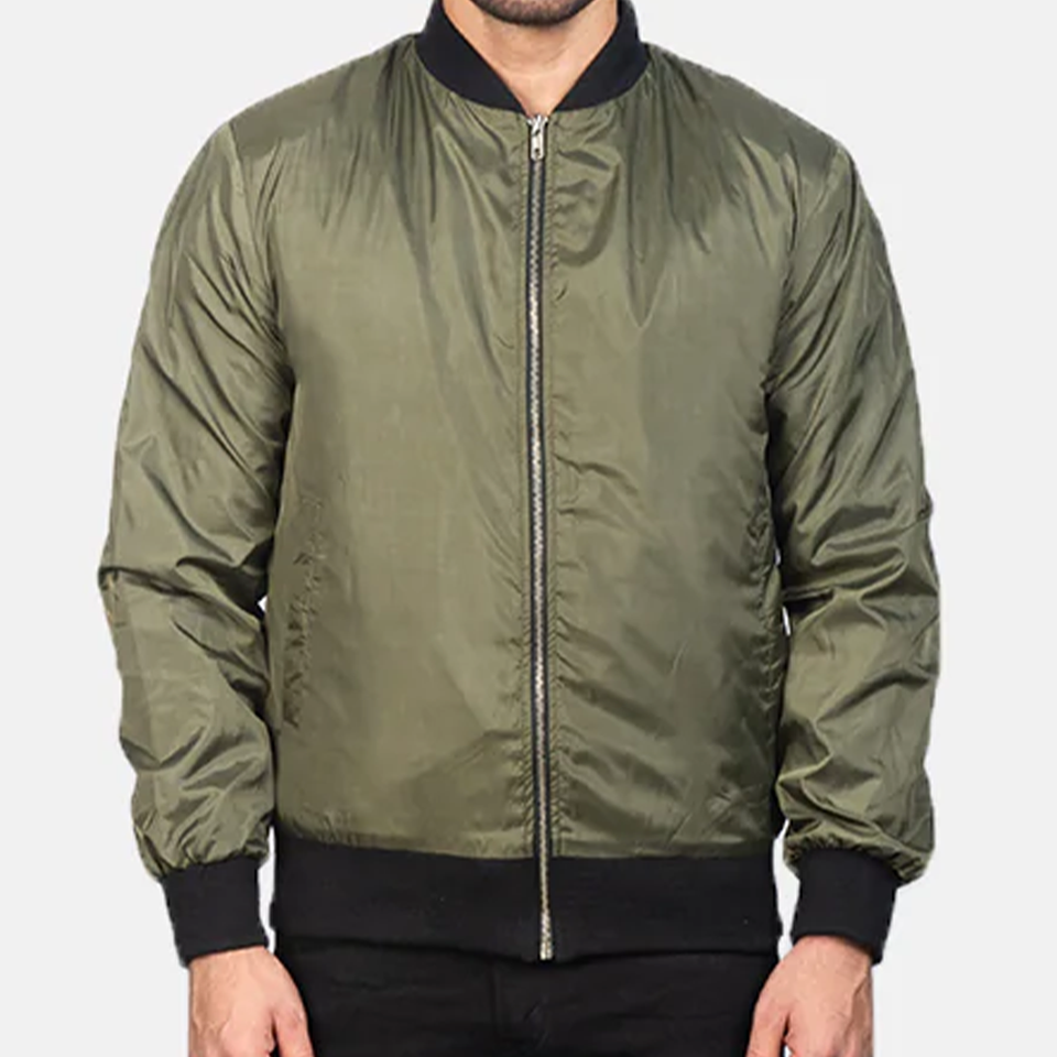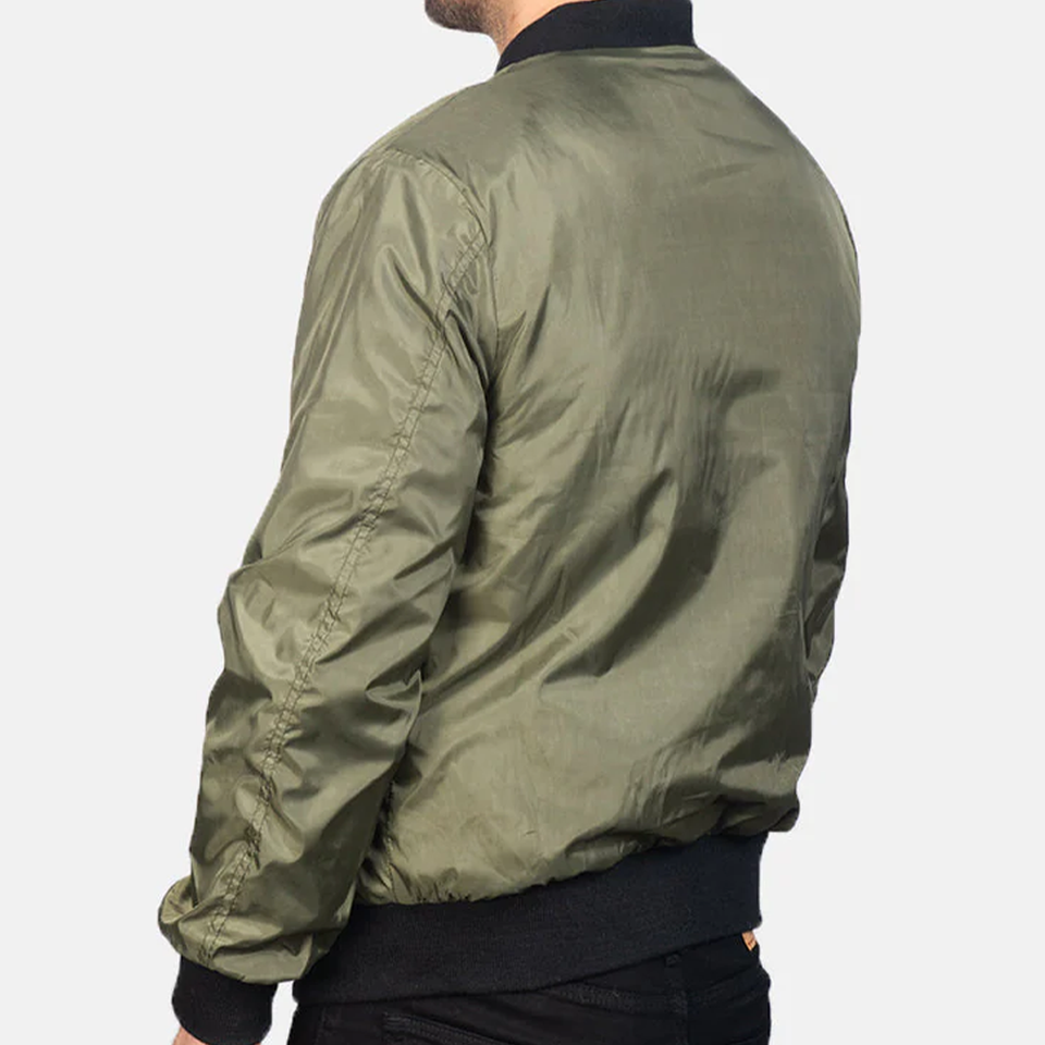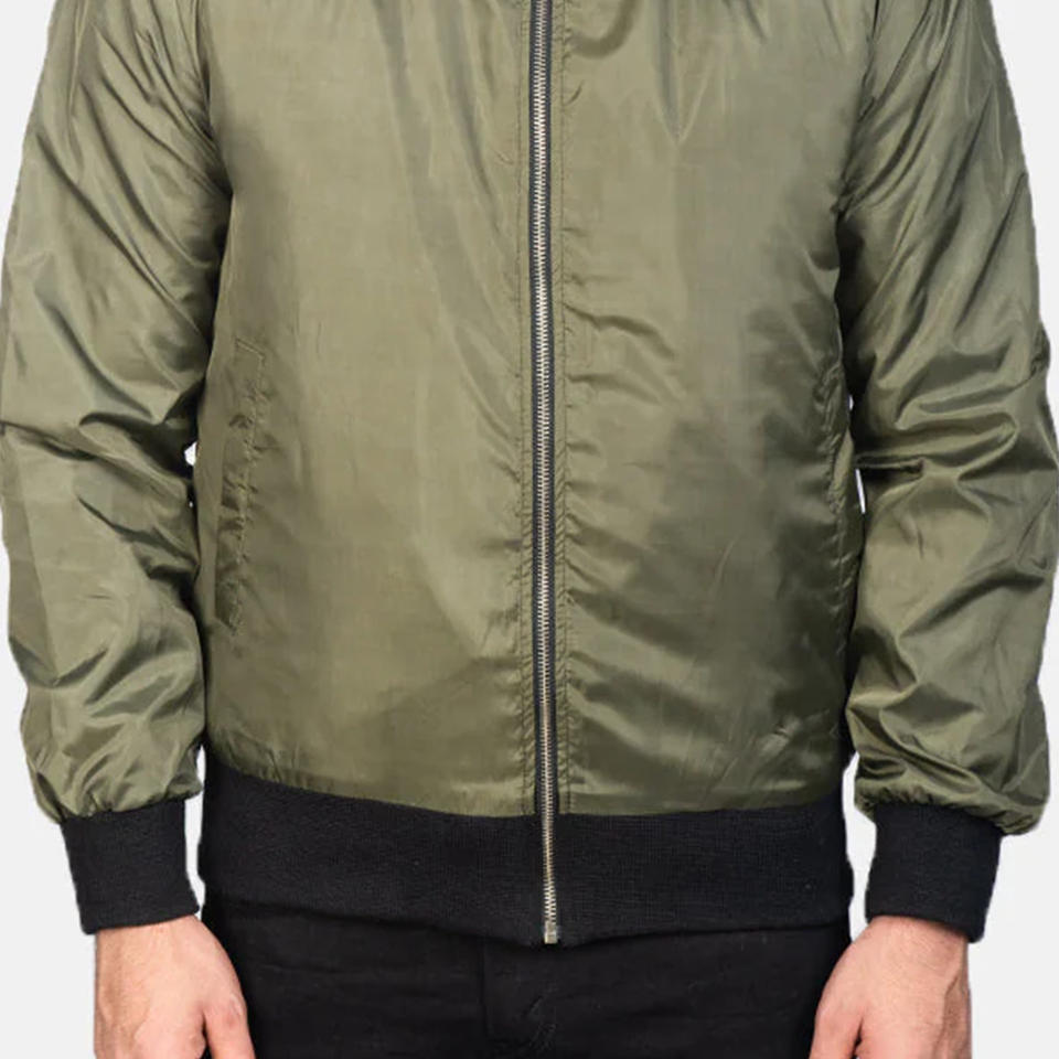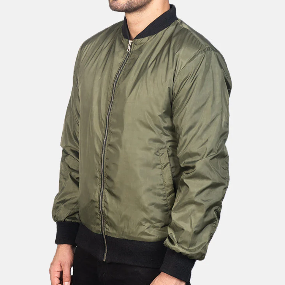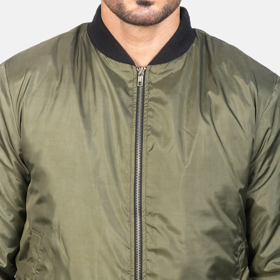 แจ็คเก็ตบอมเบอร์สีเขียวมะกอกแบบคลาสสิกสำหรับทุกเพศ คุณภาพพรีเมียม เหมาะสำหรับฤดูหนาว สไตล์ลำลองในเมือง แต่งขอบผ้าขนสัตว์