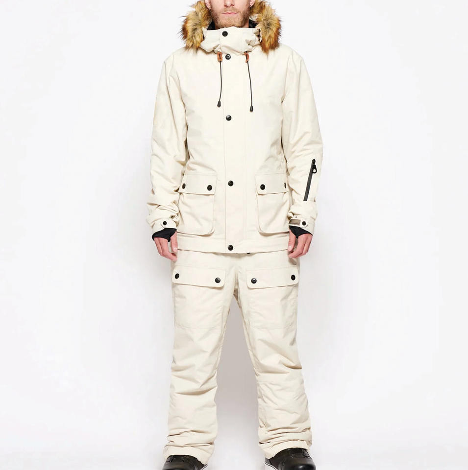 ชุดจั๊มสูทสกีกลางแจ้งสำหรับมืออาชีพ แบบยูนิเซ็กซ์ พร้อมเทคโนโลยีกันน้ำ แห้งเร็ว บุขนแกะ คอตั้ง