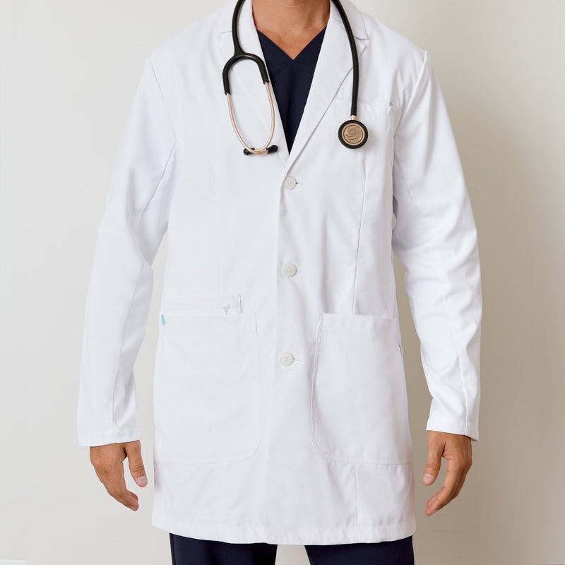 เสื้อกาวน์สีขาวสำหรับผู้ชายและผู้หญิงเสื้อโค้ทสำหรับห้องแล็บร้านเสริมสวยแบบมืออาชีพสำหรับผู้ชายและผู้หญิง