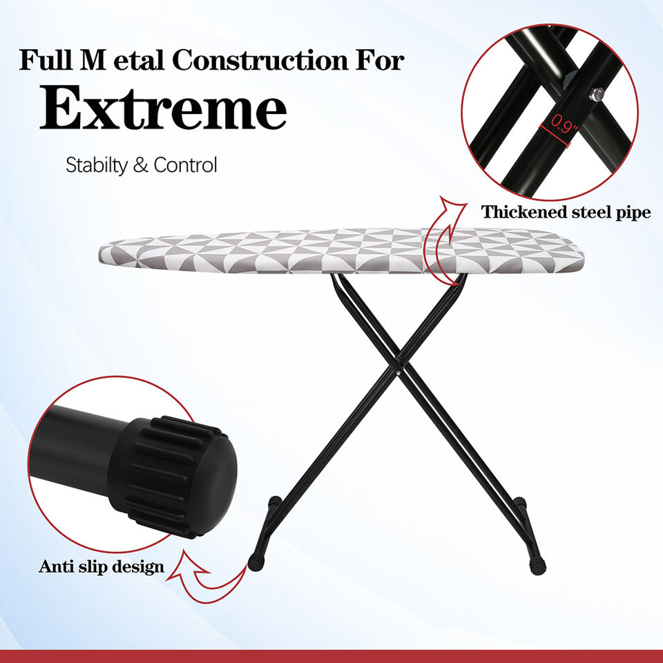 โต๊ะรีดผ้าอเนกประสงค์ขนาดใหญ่สำหรับใช้ในบ้าน พร้อมตะแกรงเหล็กสำหรับรีดไอน้ำ และผ้ารองรีดทนความร้อน