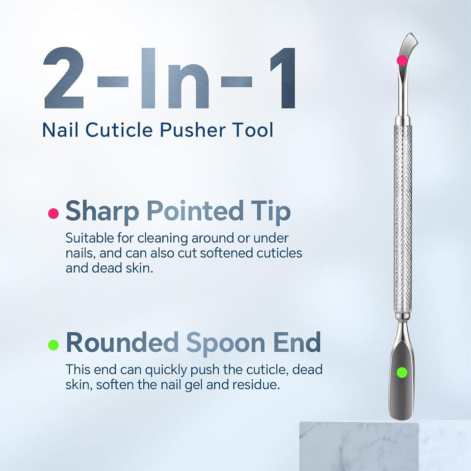 ที่ดันหนังกำพร้าสำหรับมืออาชีพ แบบสองด้าน ทำจากสแตนเลส สำหรับทำเล็บเพื่อความงาม พร้อมโลโก้