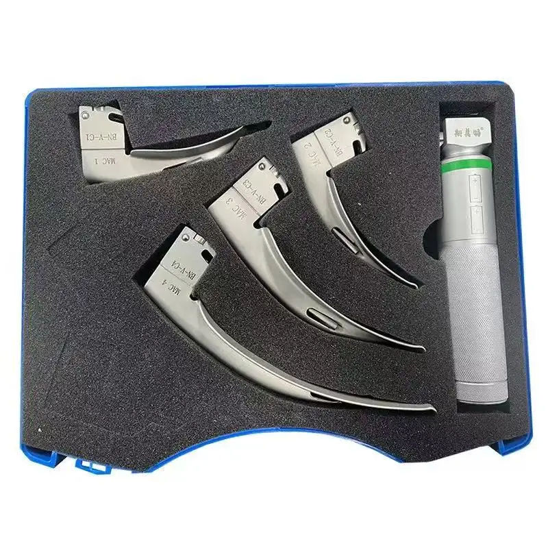 ชุดเครื่องมือทันตกรรมสำหรับสัตวแพทย์แบบมีไฟ LED เครื่องมือสำหรับดมสำหรับใส่ท่อช่วยหายใจฉุกเฉินพร้อมใบมีดแมคอินทอช5ตัวและ4มิลเลอร์วัสดุเหล็ก