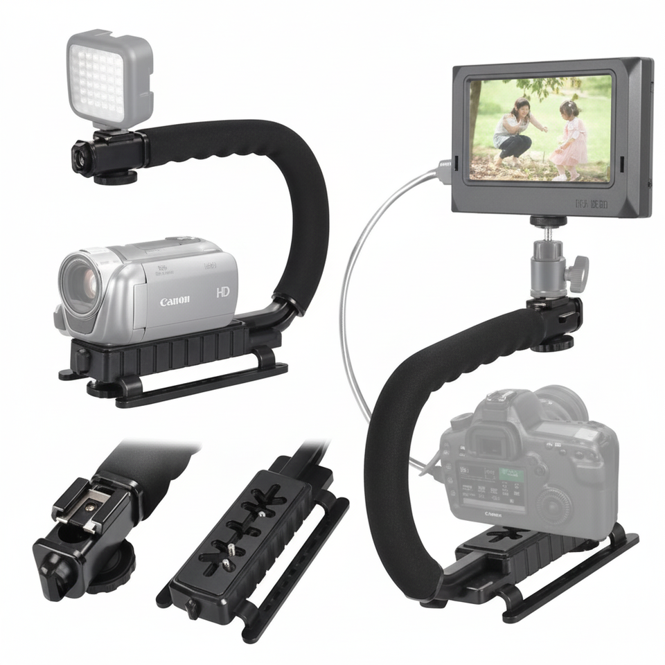 ด้ามจับกล้องวิดีโอระดับมืออาชีพ อลูมิเนียมอัลลอยด์ พร้อม Cold Shoe Mount แบบปลดเร็ว สำหรับถ่ายวิดีโอ