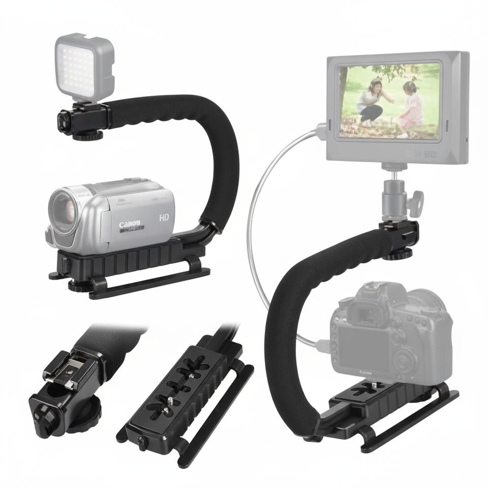 ด้ามจับกล้องวิดีโอระดับมืออาชีพ อลูมิเนียมอัลลอยด์ พร้อม Cold Shoe Mount แบบปลดเร็ว สำหรับถ่ายวิดีโอ