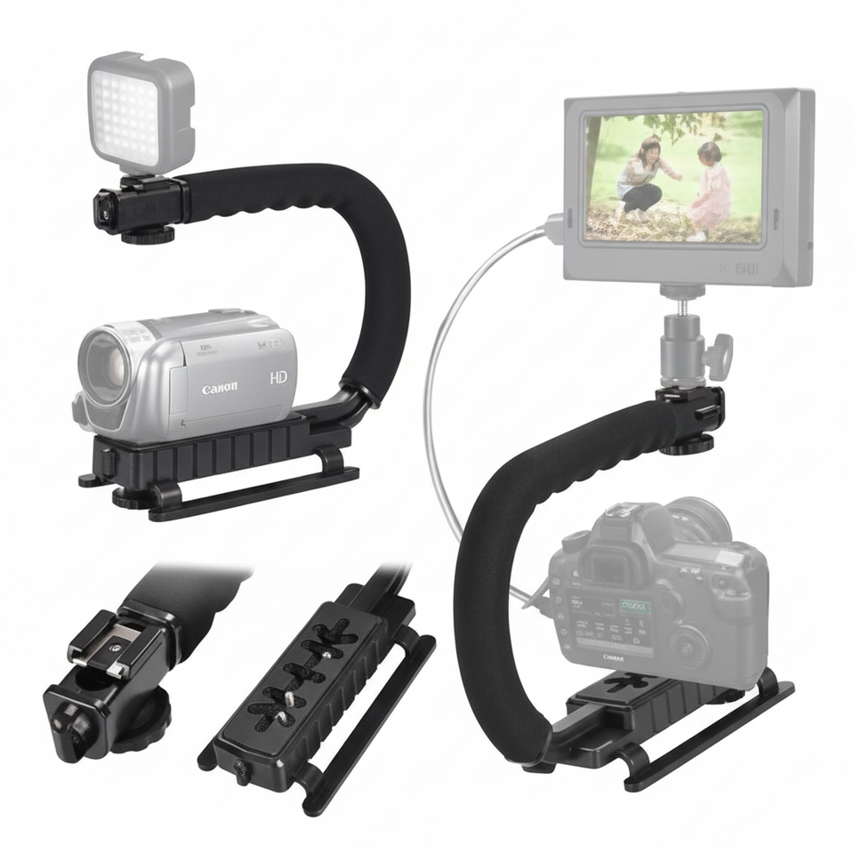 ด้ามจับกล้องวิดีโอระดับมืออาชีพ อลูมิเนียมอัลลอยด์ พร้อม Cold Shoe Mount แบบปลดเร็ว สำหรับถ่ายวิดีโอ