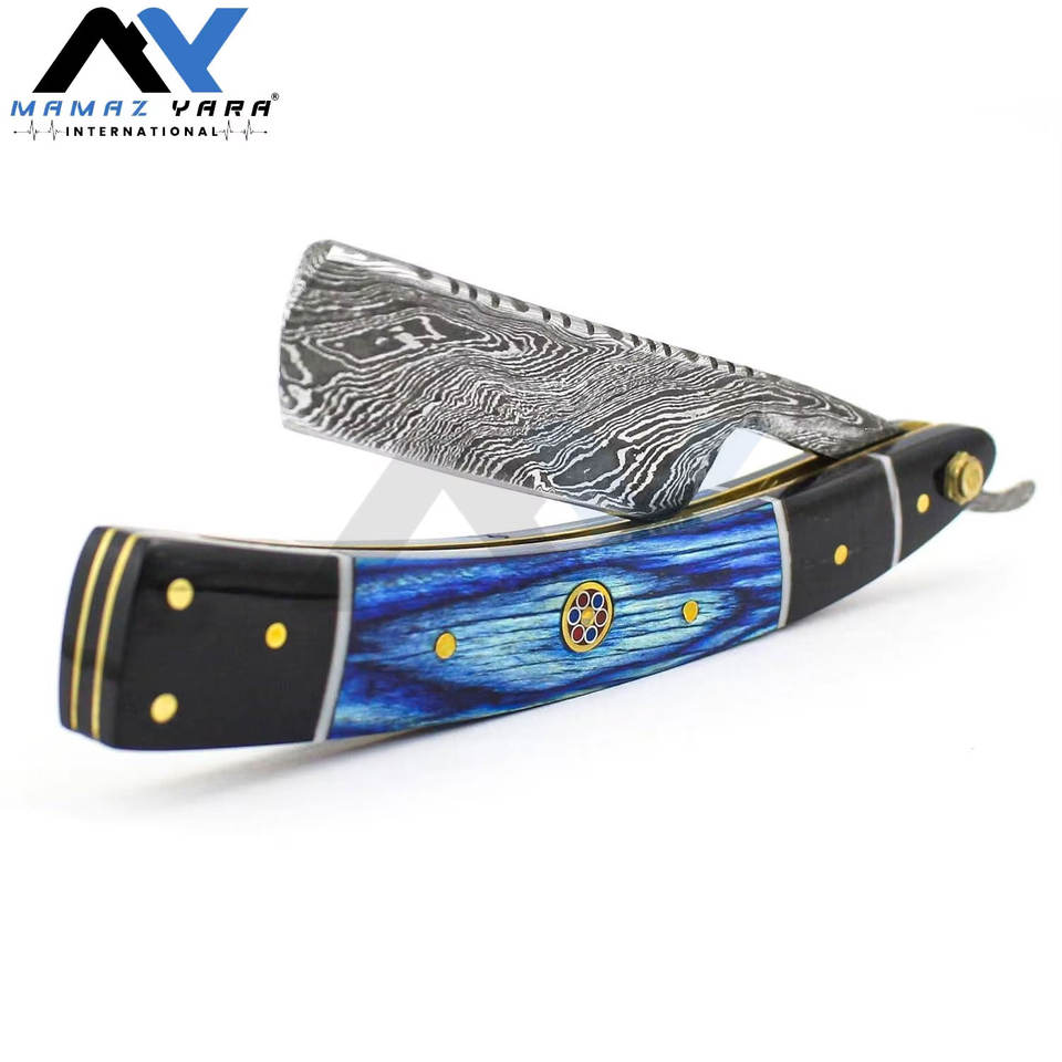 มีดโกนเหล็กดามัสกัสวินเทจระดับมืออาชีพสำหรับผู้ชาย ได้รับการรับรองจากช่างตัดผม มีดโกนแบบใช้แล้วทิ้ง คลาสสิก ใบมีดโกนแบบตรง