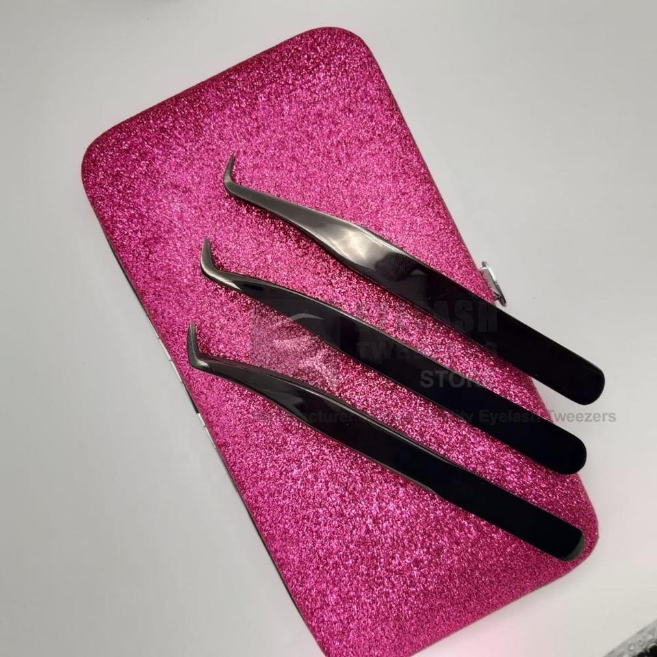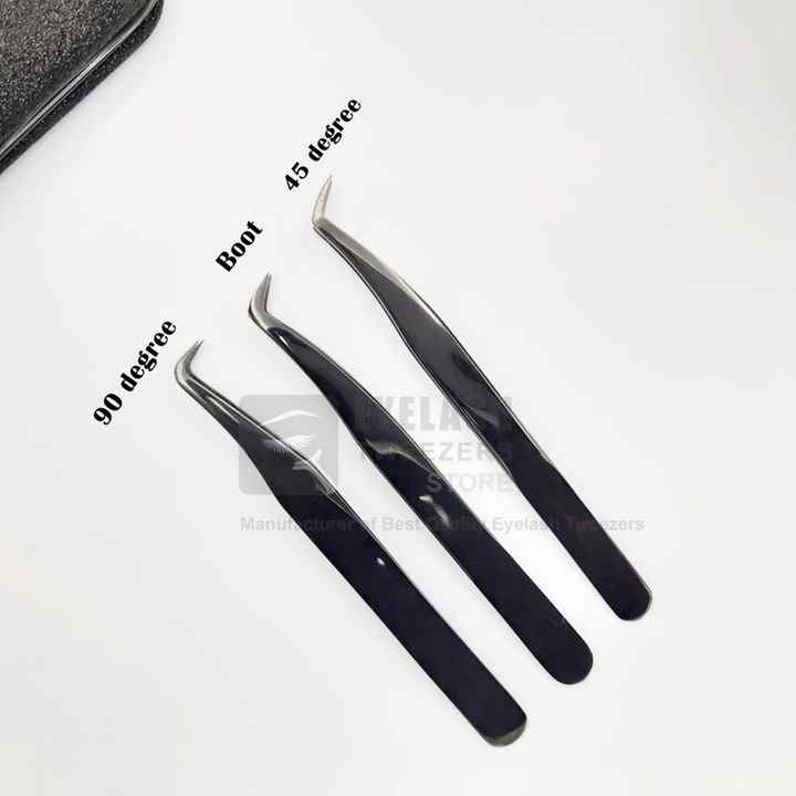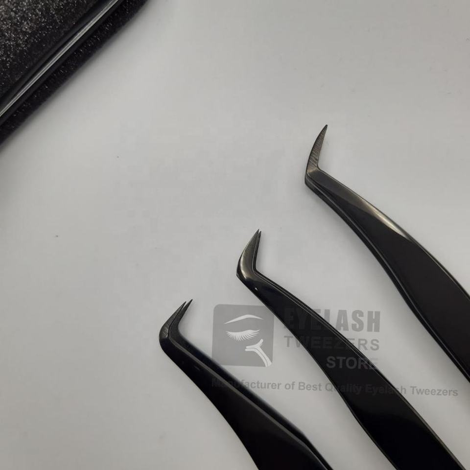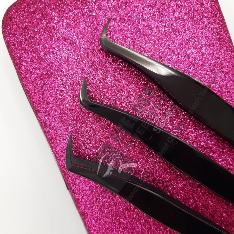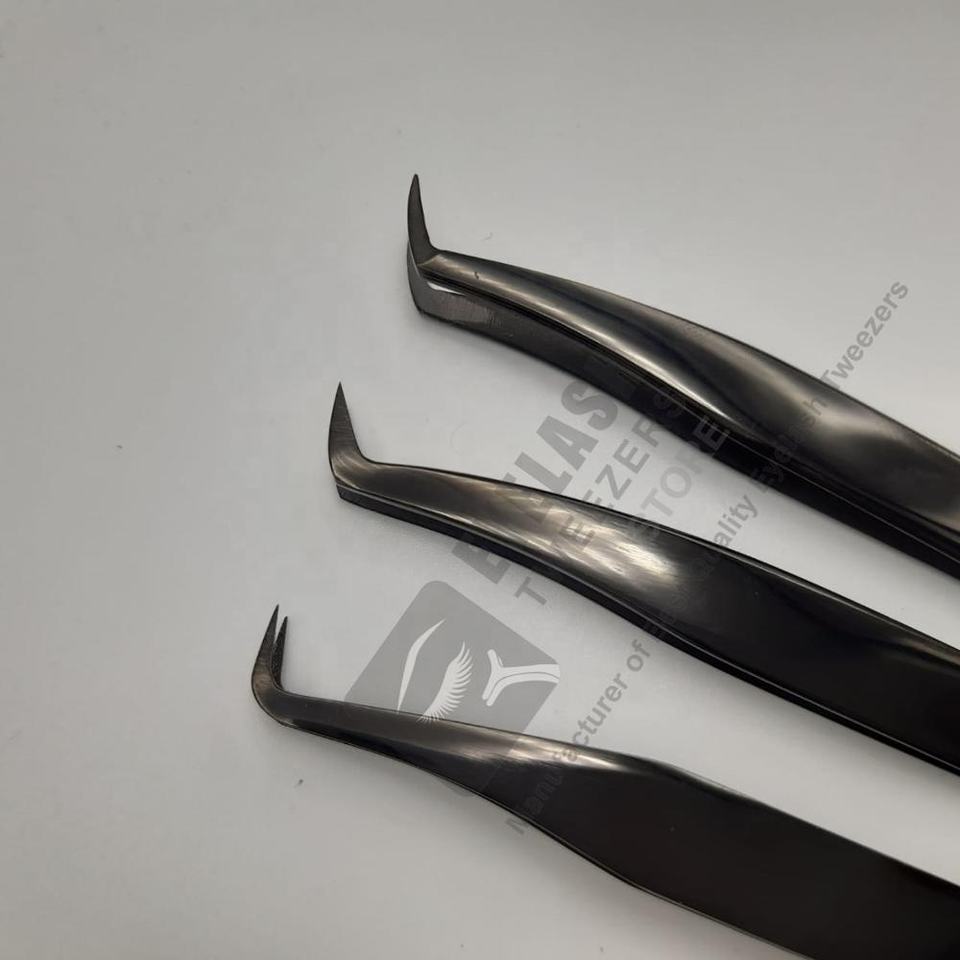 แหนบขนตาพลาสม่าสีดำแบบใช้มือทดสอบที่ยั่งยืนอุปกรณ์ต่อขนตาแบบญี่ปุ่นทำจากสเตนเลสที่แข็งแรงทนทานปริมาณระดับมืออาชีพ