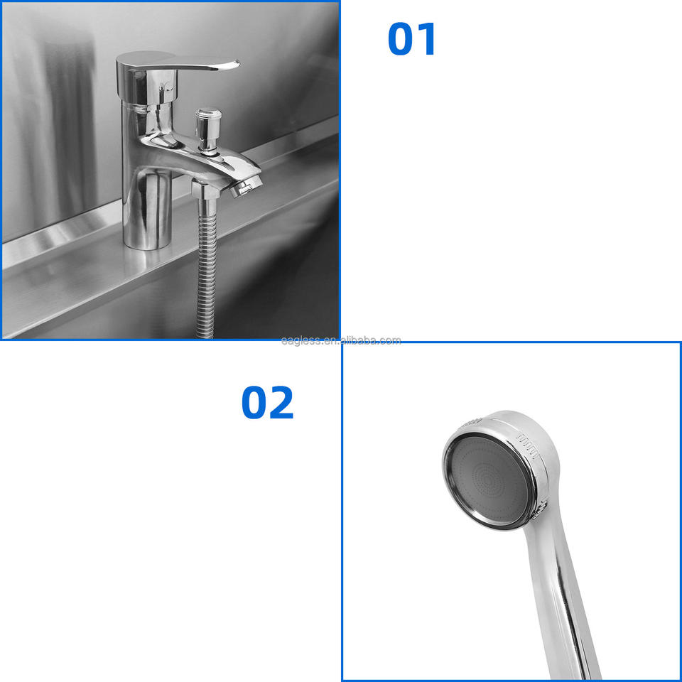 อ่างอาบน้ำสุนัขสแตนเลสแบบมืออาชีพ พร้อมท่อระบายน้ำกลาง ก๊อกน้ำ และเก้าอี้กรูมมิ่ง
