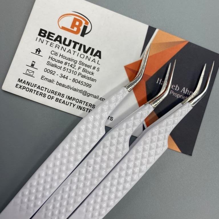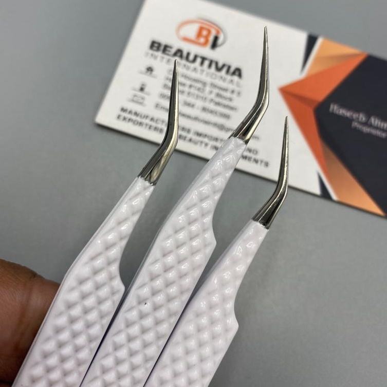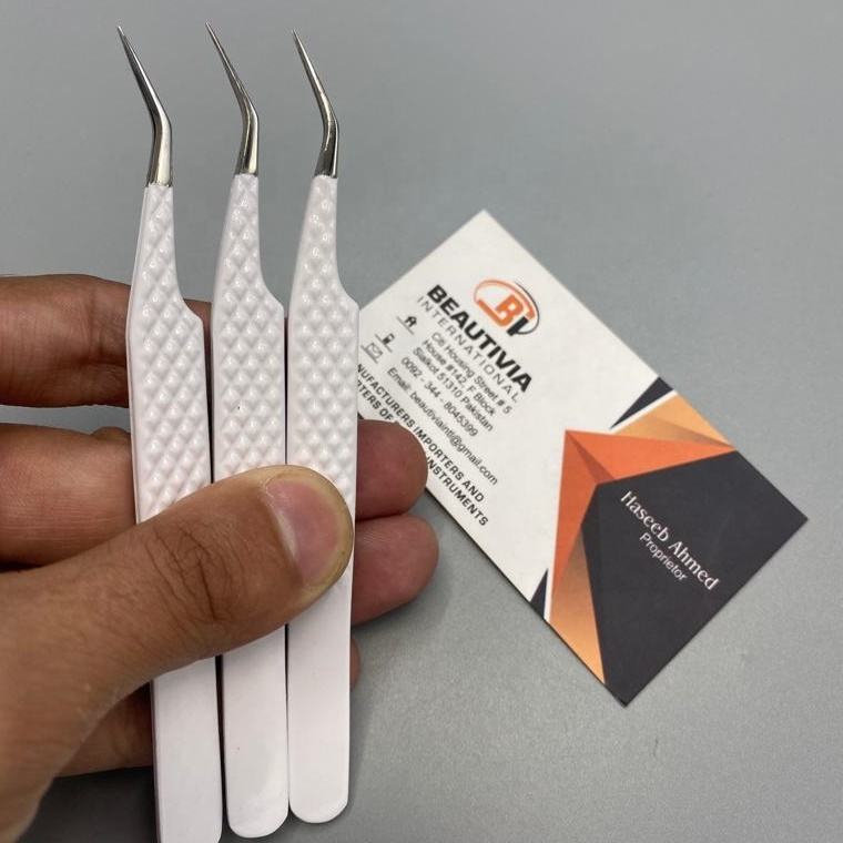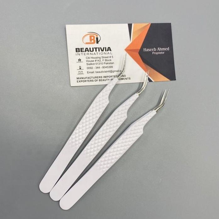 แหนบต่อขนตาสแตนเลสเคลือบสีขาวแบบมืออาชีพปรับแต่งได้ตามต้องการ
