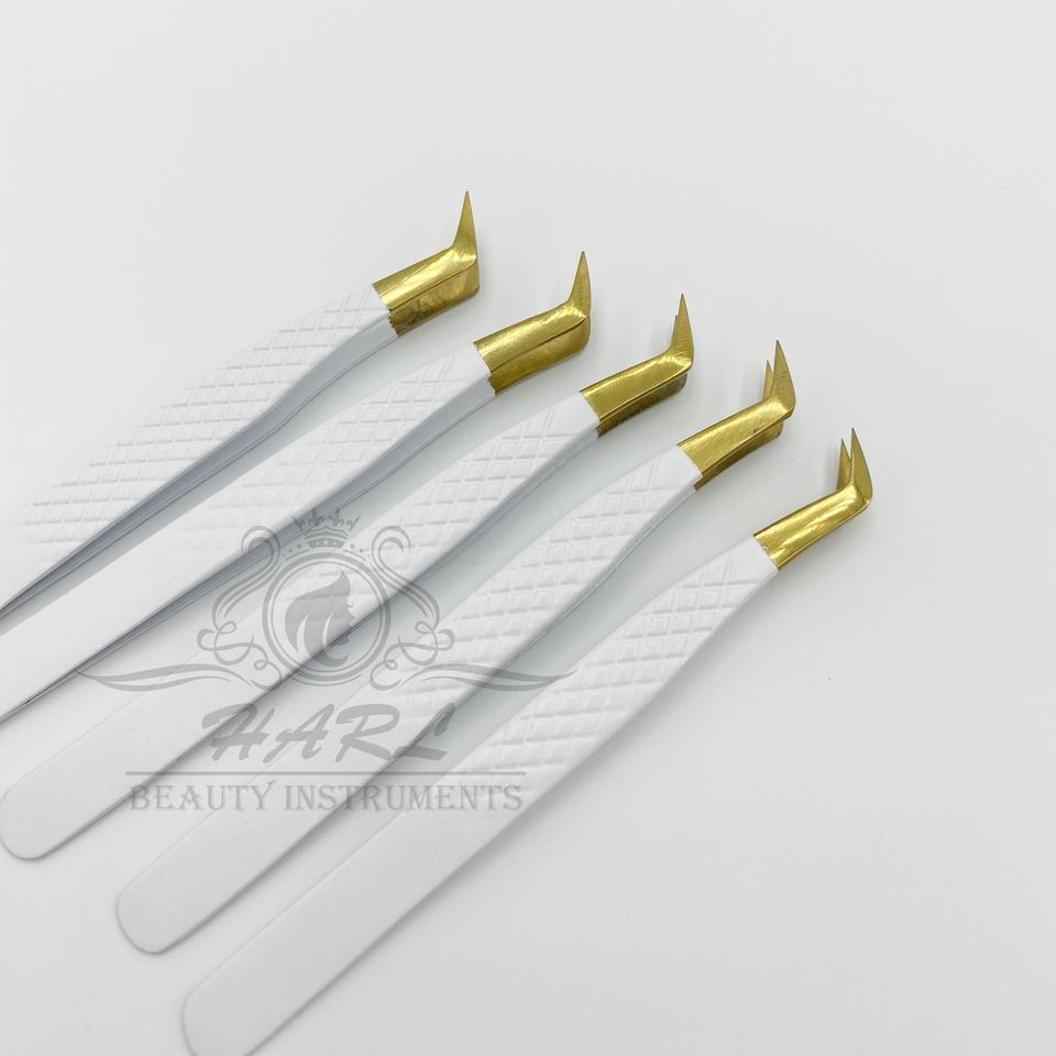 แหนบต่อขนตาบูต45องศาสีขาวโทนสีทองแบบมืออาชีพขนตาปลอมไม่ลื่นทำโลโก้ตามสั่ง
