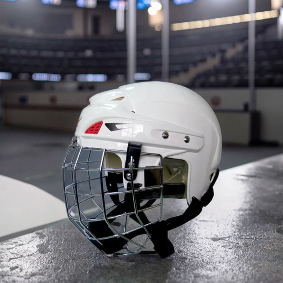 หมวกฮอกกี้น้ำแข็งสีขาวระดับมืออาชีพ - วัสดุ ABS/EVA ป้องกันเต็มใบหน้า (ทุกขนาด)