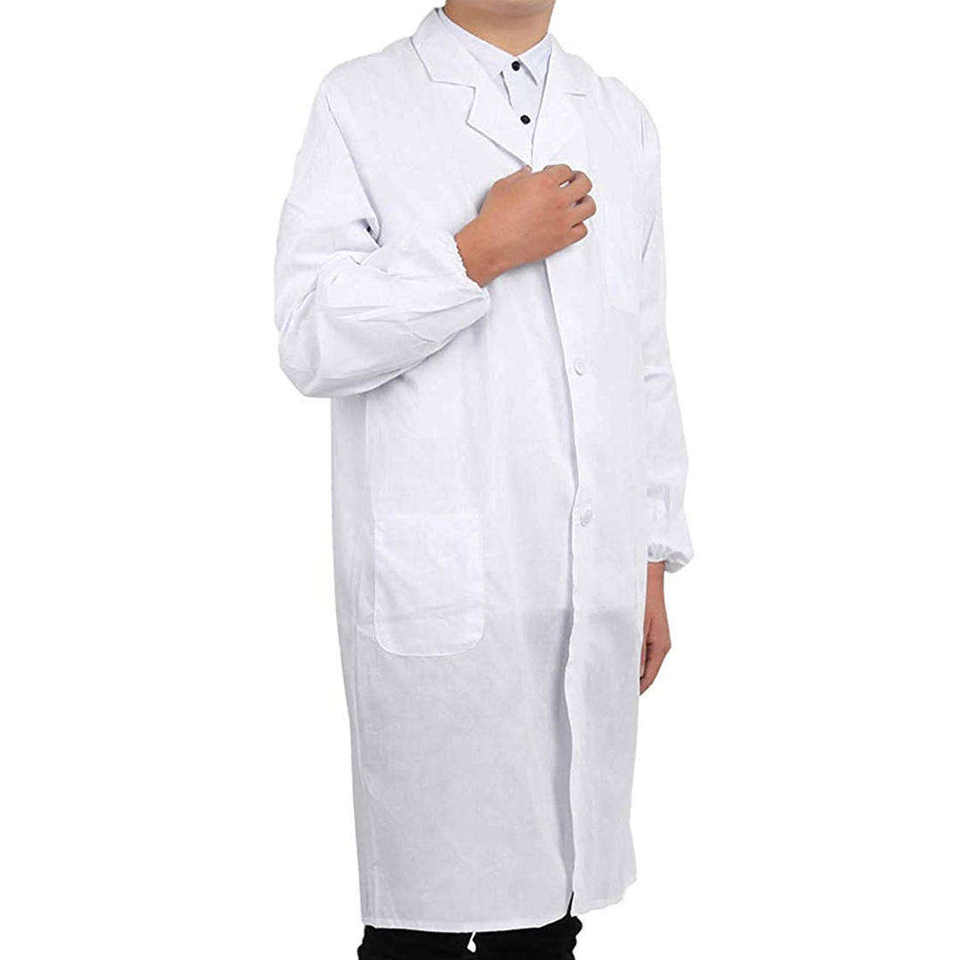 ชุดกาวน์ทางการแพทย์ป้องกันทางคลินิกชุดกาวน์สีขาวสำหรับแพทย์พยาบาลและเจ้าหน้าที่การดูแลสุขภาพกำหนดโลโก้ได้เอง