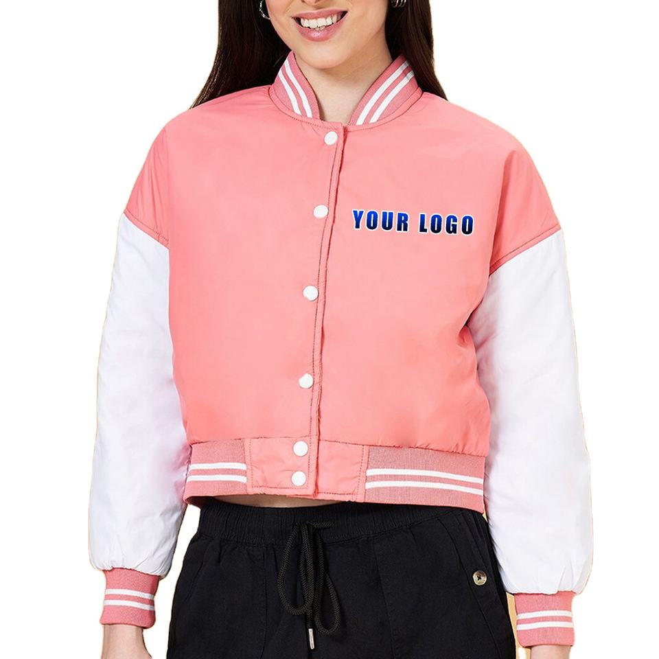 ชื่อสินค้า:เสื้อแจ็กเก็ต Varsity ครอปสำหรับผู้หญิง