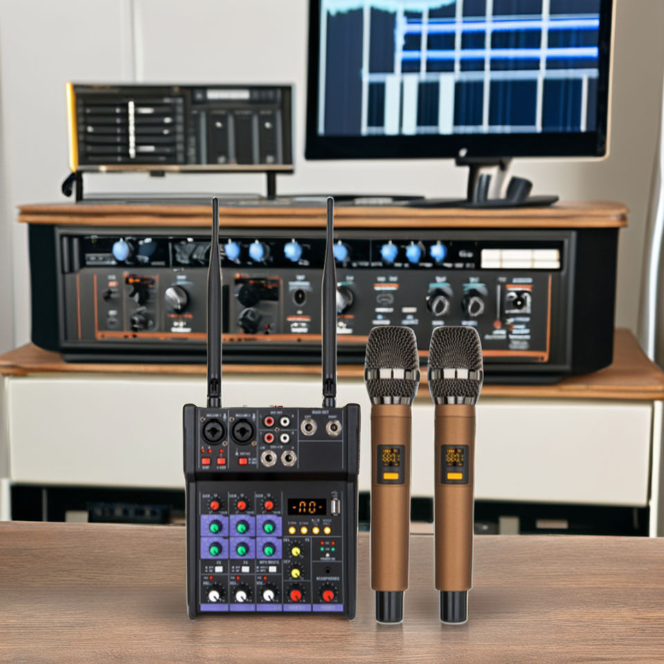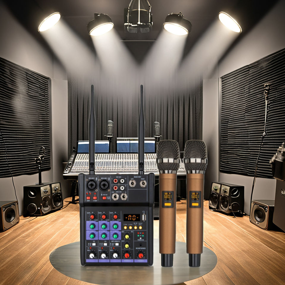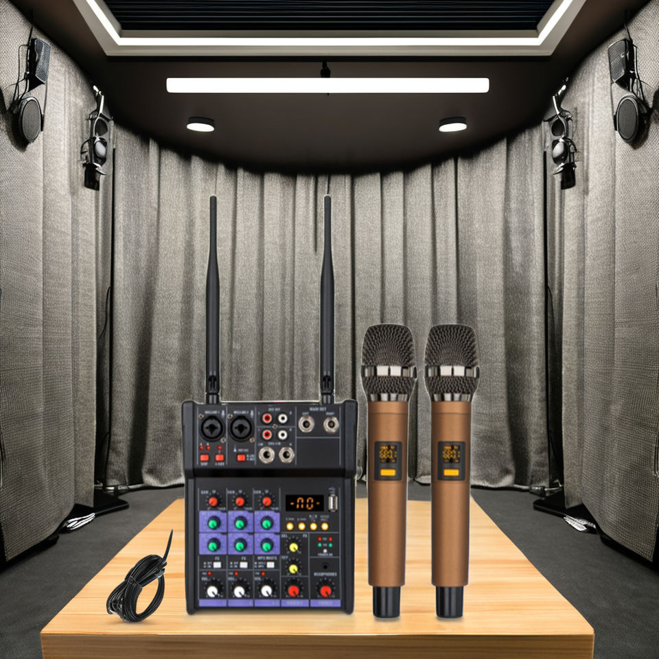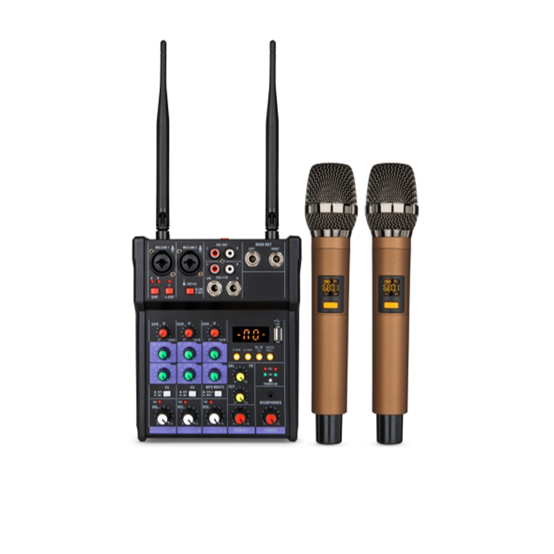ชุดไมโครโฟนคาราโอเกะไร้สายแบบมืออาชีพพร้อมฟังก์ชั่นตัดเสียงรบกวนการ์ดเสียงบ้านยูเอสบีบลูทูธคอนโซลมิกซ์ขนาดเล็ก