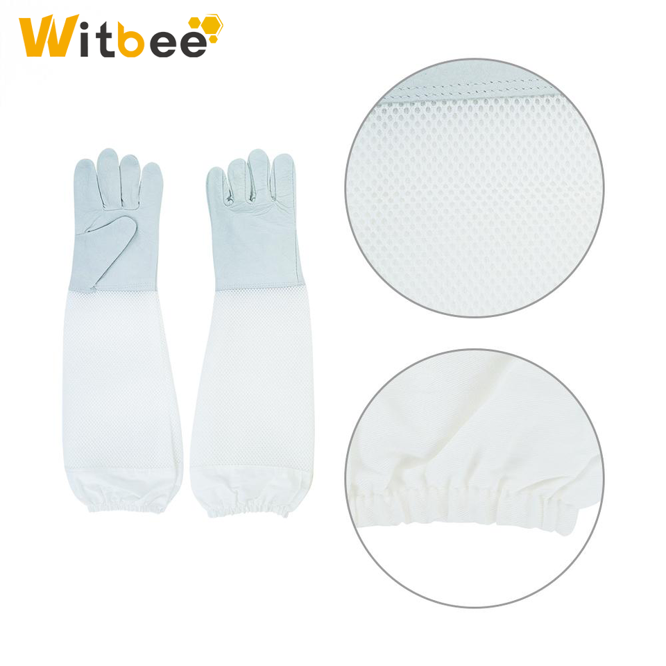 ถุงมือเลี้ยงผึ้งมืออาชีพ Witbee BG-6 สีเหลือง ป้องกันการถูกต่อย ทำจากหนังแกะ ระบายอากาศได้ดี แขนถุงมือแบบตาข่าย ปลายแขนยืดหยุ่นยาว ถุงมือป้องกันเพื่อความปลอดภัย