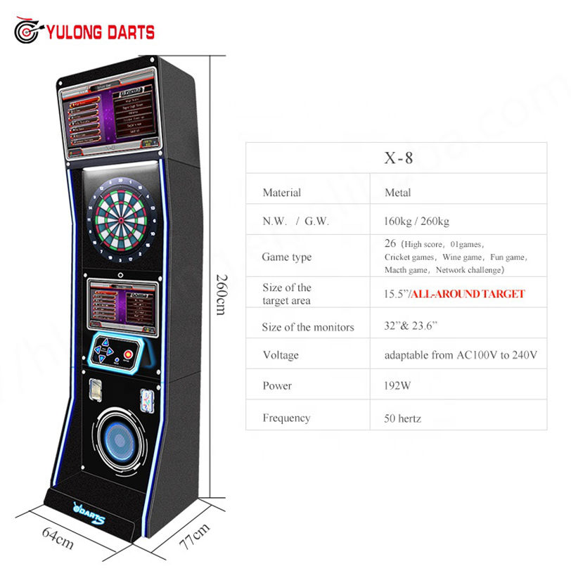 กระดานปาลูกดอก YULONG X-8 รุ่นใหม่ ผลิตจากโลหะผสม รับน้ำหนักได้ 160 กิโลกรัม 26 เกม แบบแขวนในร่ม สีดำ หนาพิเศษ พร้อมโลโก้สั่งทำ