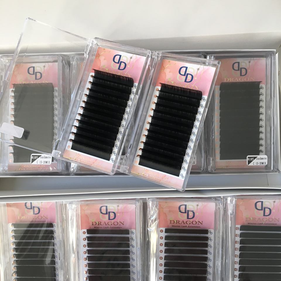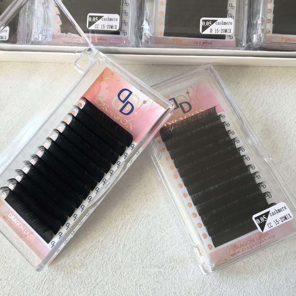 Professional DRAGONLASH Cashmere Mink Lash Extensions Trays Custom Logo Easy Fan Full Thickness Dark Black Eyelash Extensions