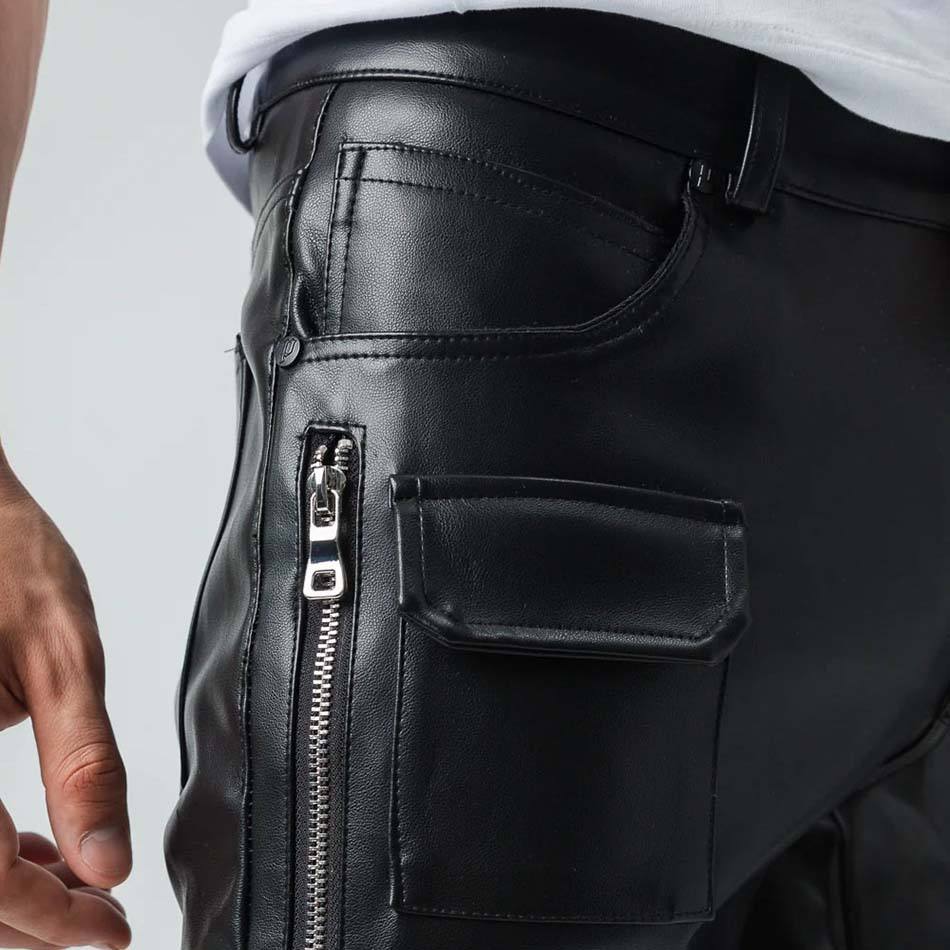 กางเกงหนังผู้ชายทันสมัยตัวหนาผลิตจากวัสดุเรียบเย็บแข็งแรงและใส่ได้พอดี
