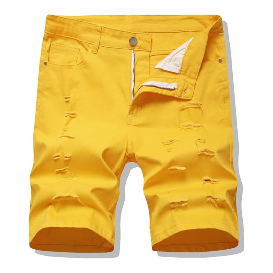 กางเกงขาสั้นผ้ายีนส์ของผู้ชายกางเกงขาสั้นสไตล์ลำลองทำจากผ้าฝ้าย100% เป็นมิตรกับสิ่งแวดล้อม